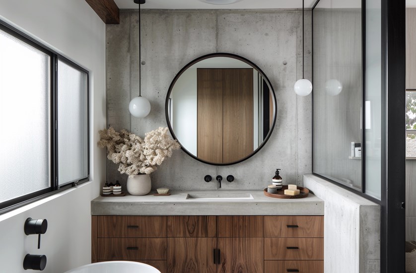 One of the standout features of mid-century design is the use of round mirrors, which add a soft, natural flow to a room.