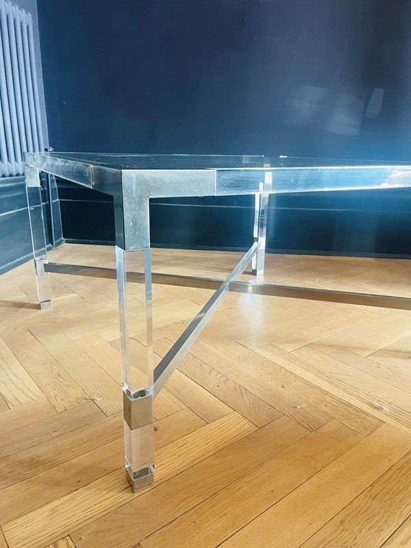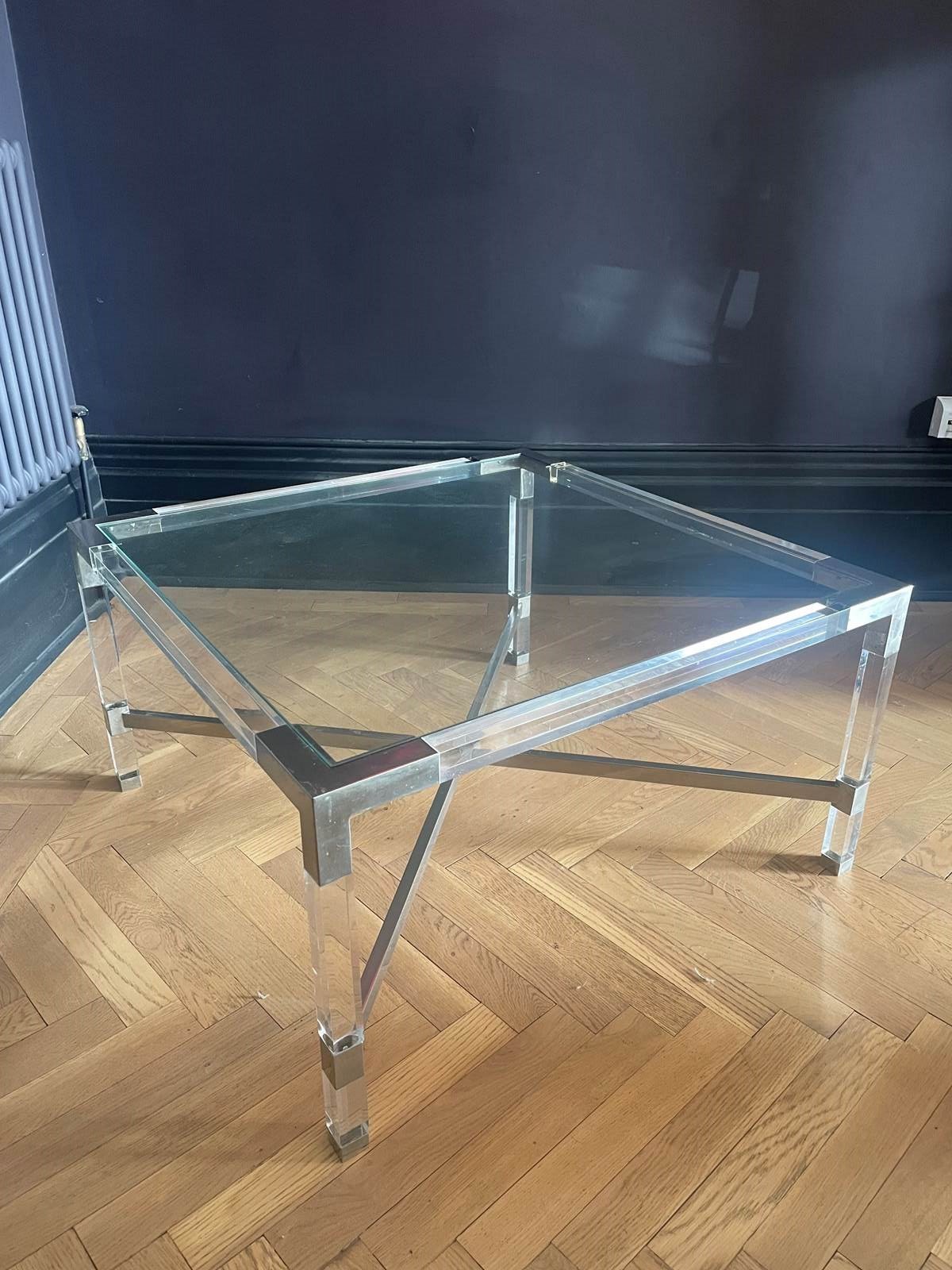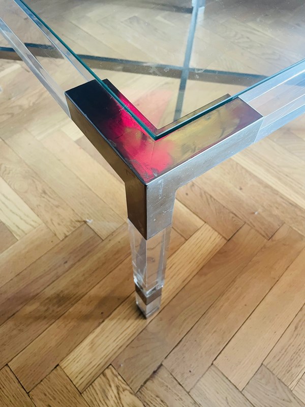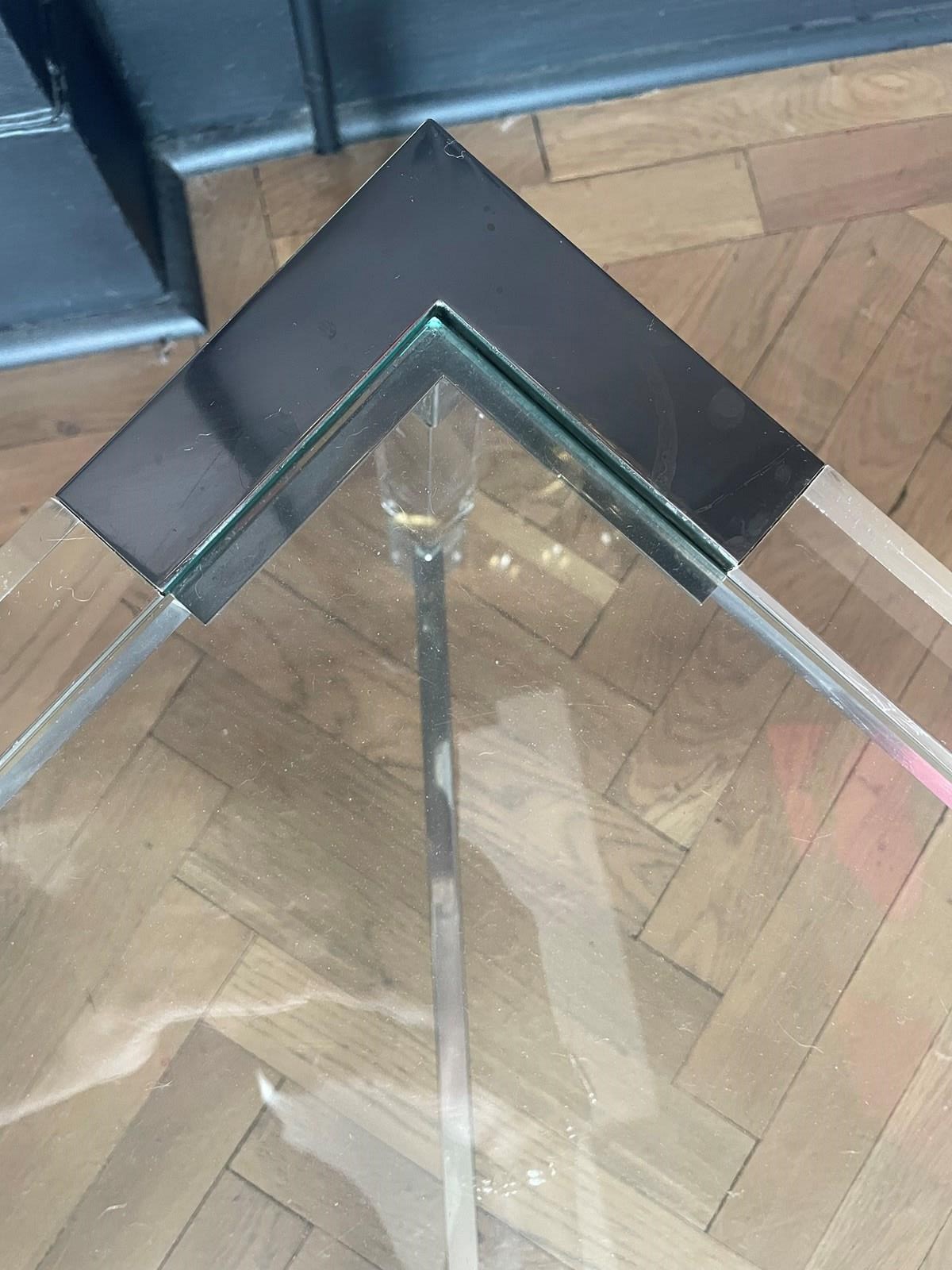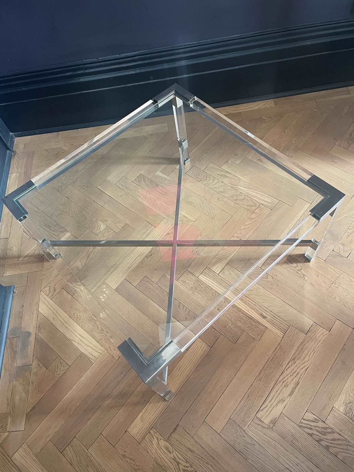 One of a pair of 1970s chrome & lucite coffee tables.