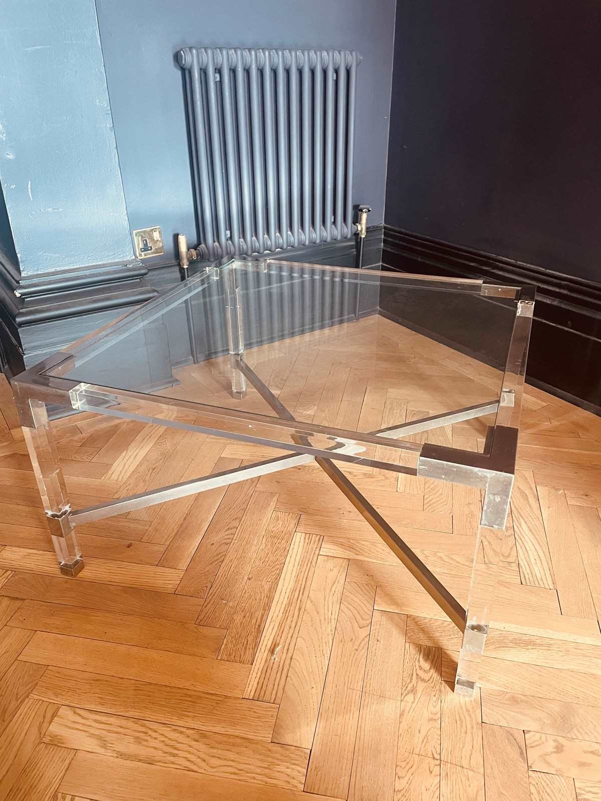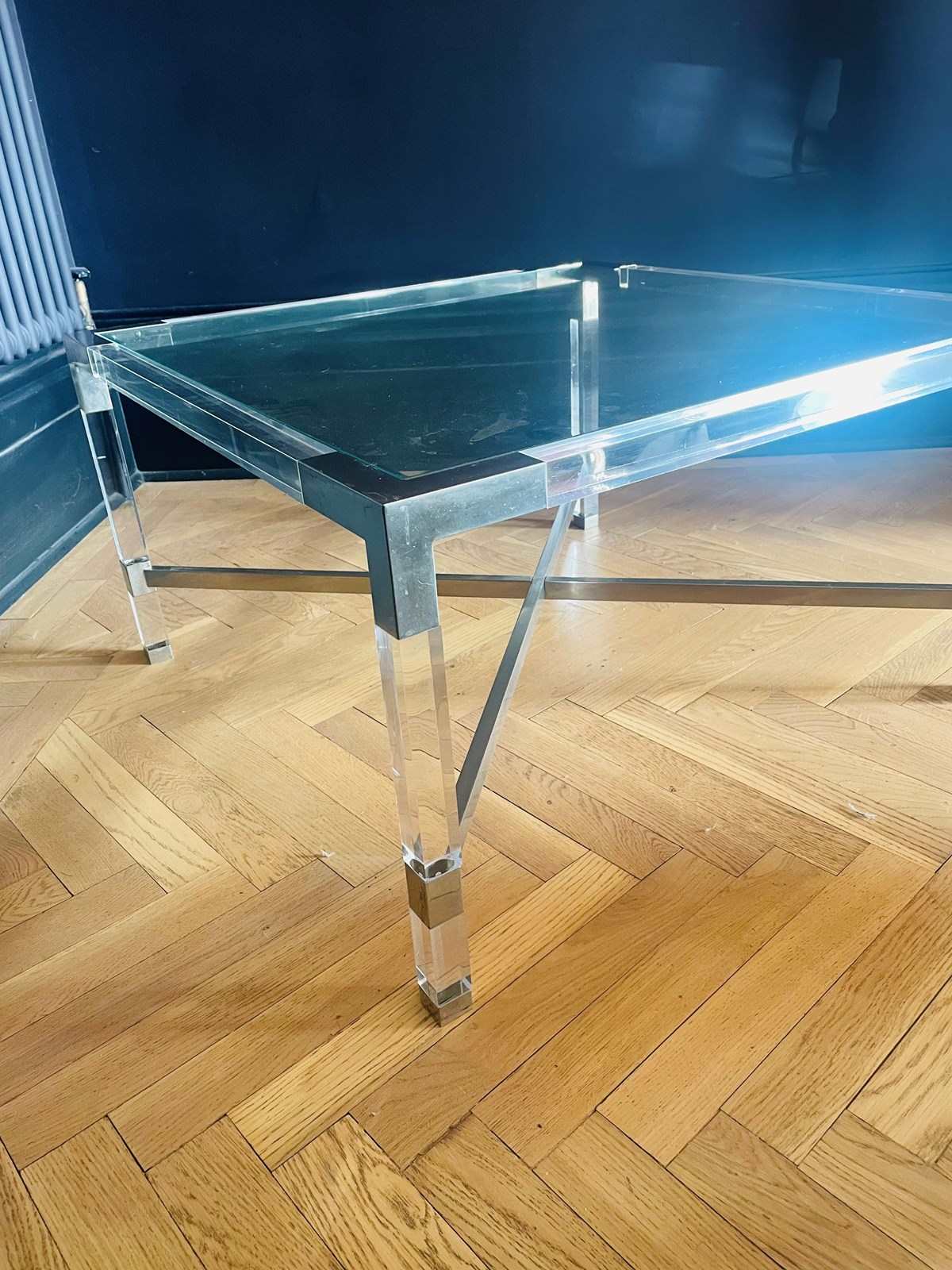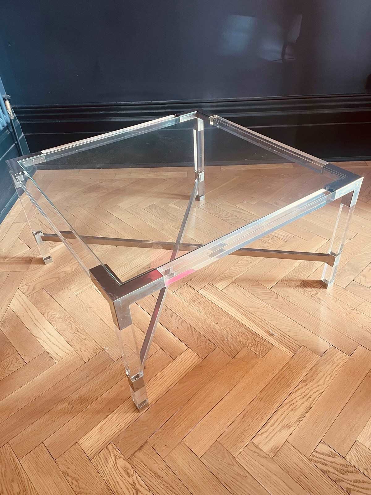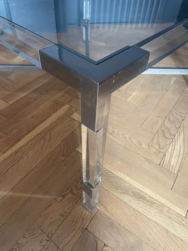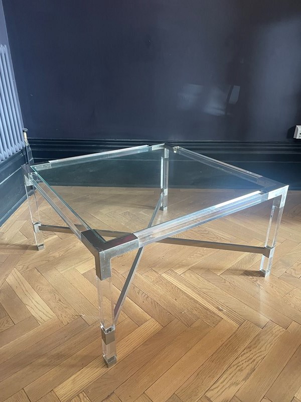 One of a pair of 1970s chrome & lucite coffee tables.