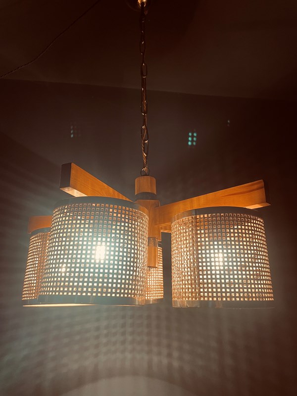 Danish Teak & Rattan Pendant