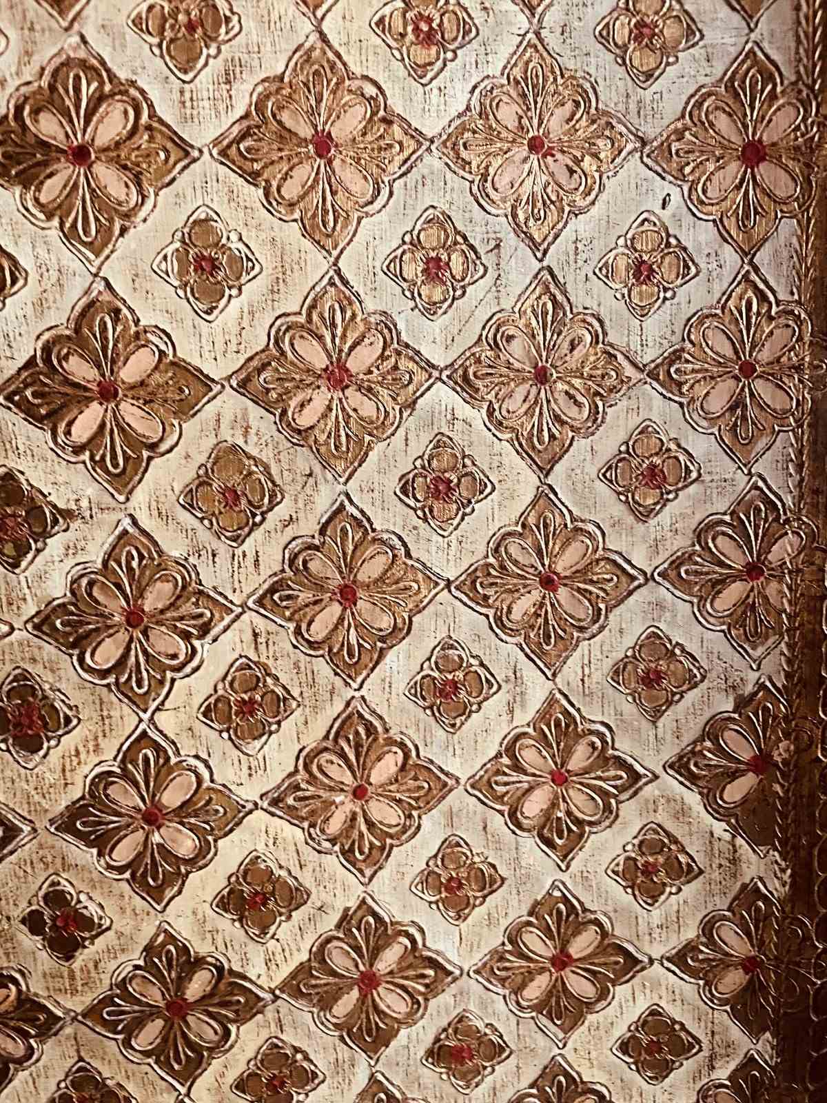 These were designed to appear distressed, and in good condition for its age, it does display a couple of areas of loss (please see last photo where there is an area right at the back).