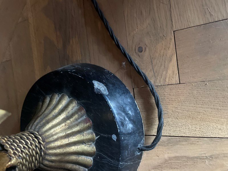 Wonderful and rare Italian gilt lamp - this is tall enough to work as a floor lamp and indeed has been fitted with a foot switch. Or equally it works as a table lamp depending on your requirement. (The depth of the shade is 41 cms, which is quite large, so if you wanted it as a table lamp you could always replace it with a shade that has less depth).