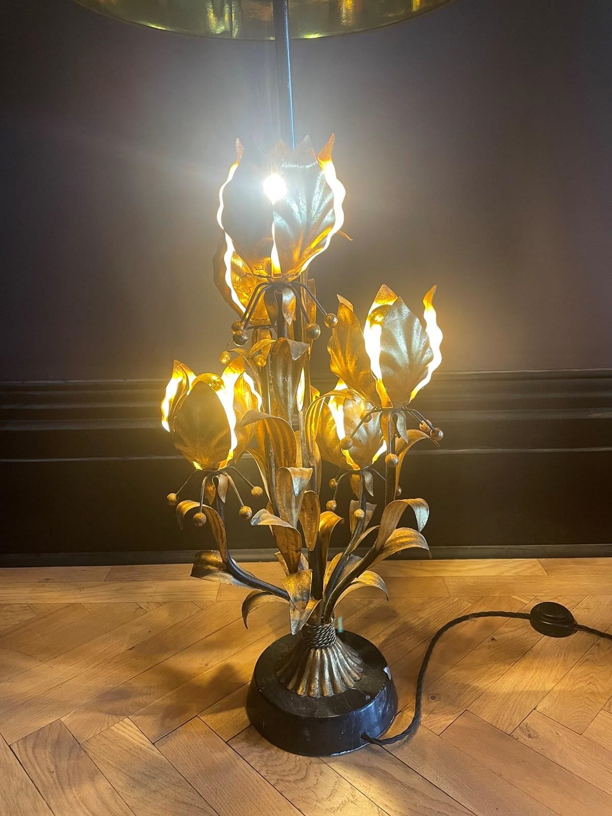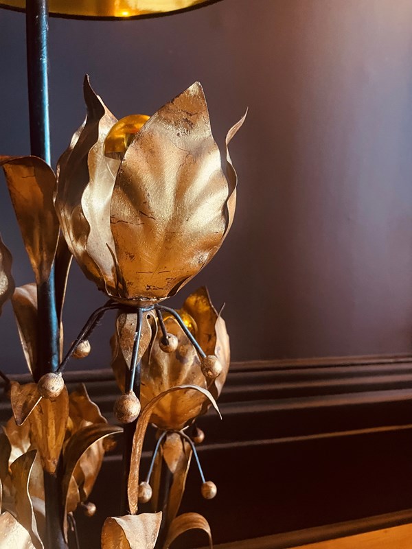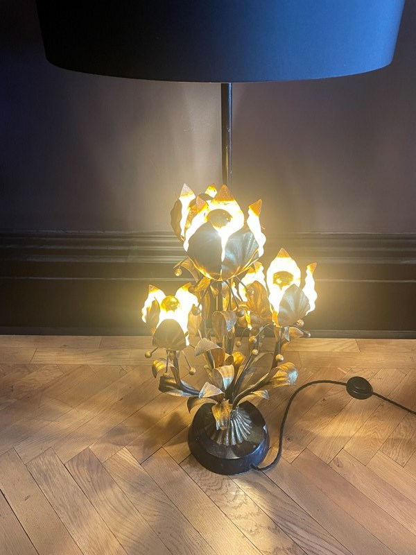 Huge Italian Gilt Flower Floor/Table Lamp
