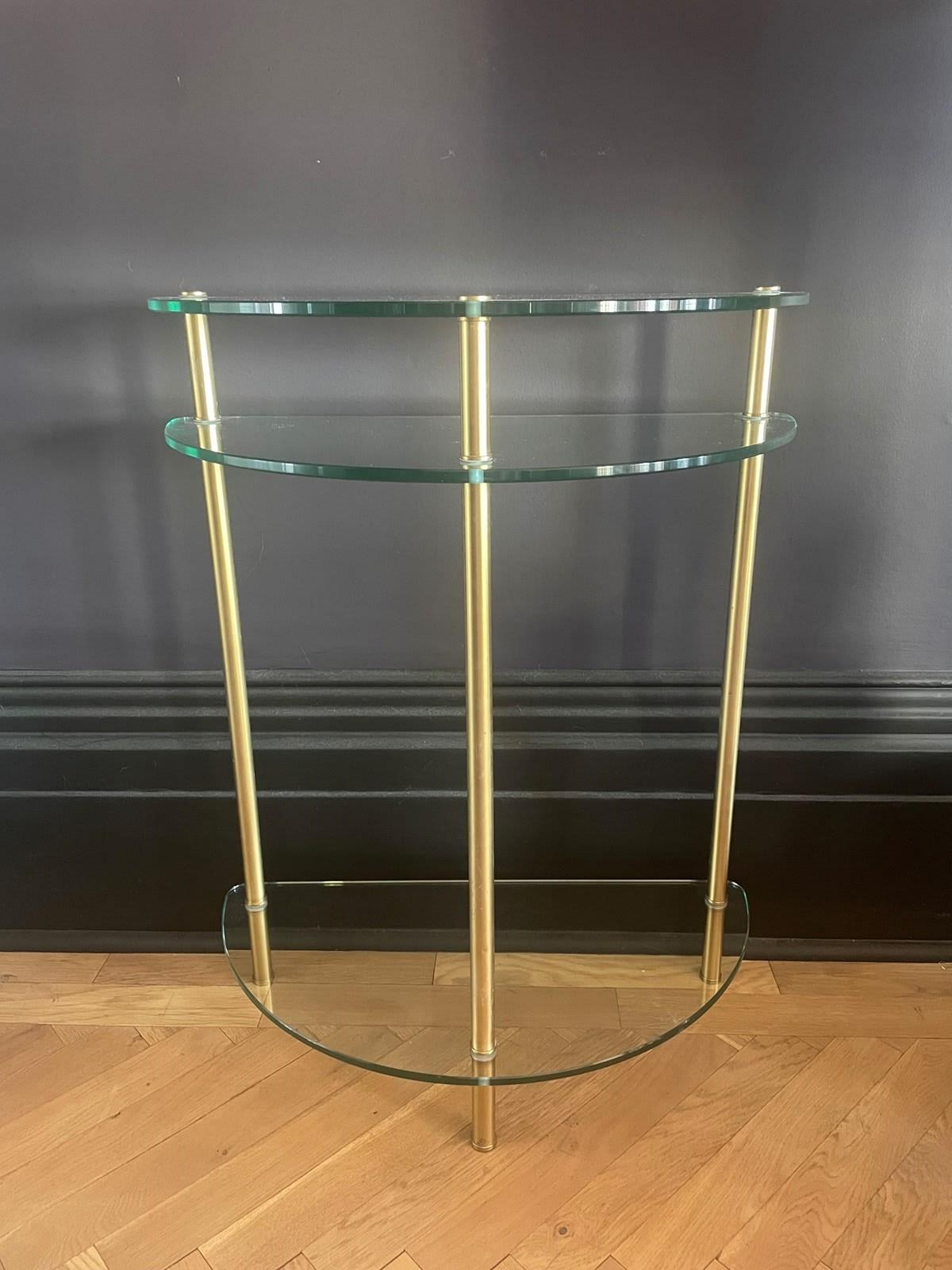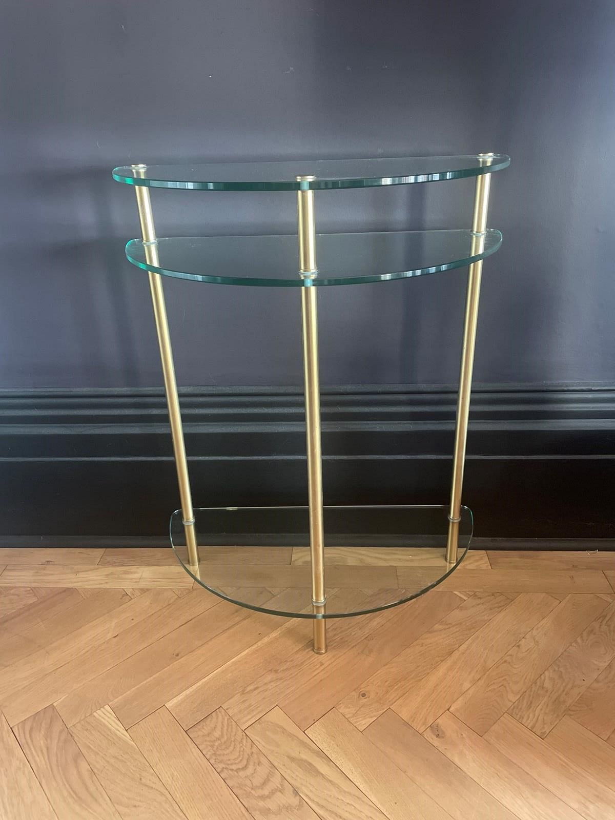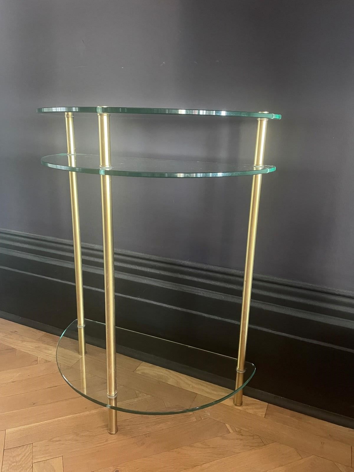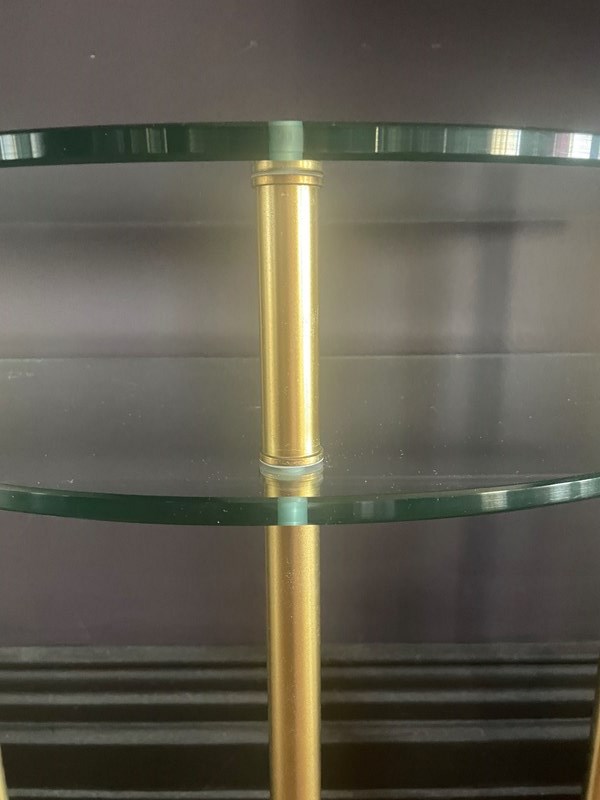 Brushed brass legs that are showing a little patination in places but not really visible.