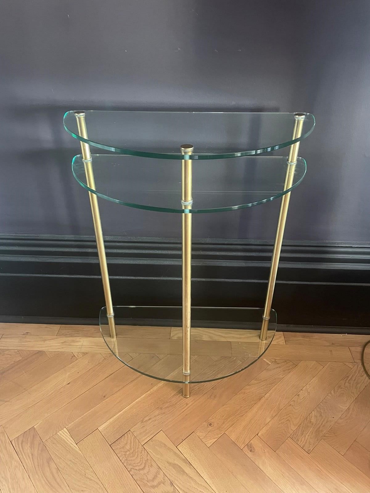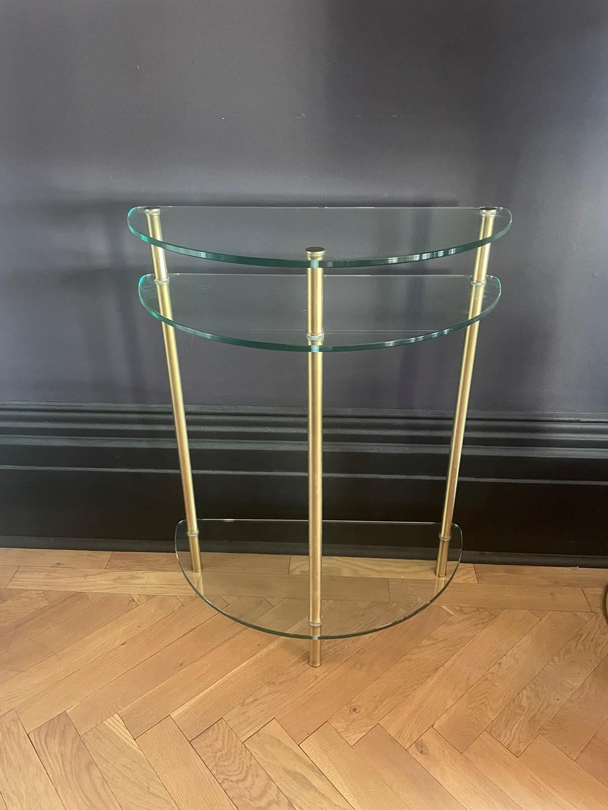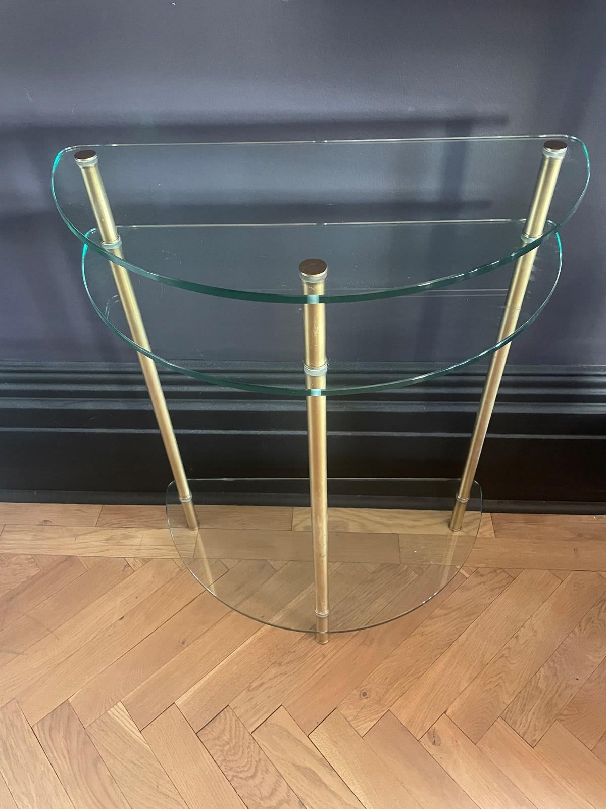 Brushed brass legs that are showing a little patination in places but not really visible.