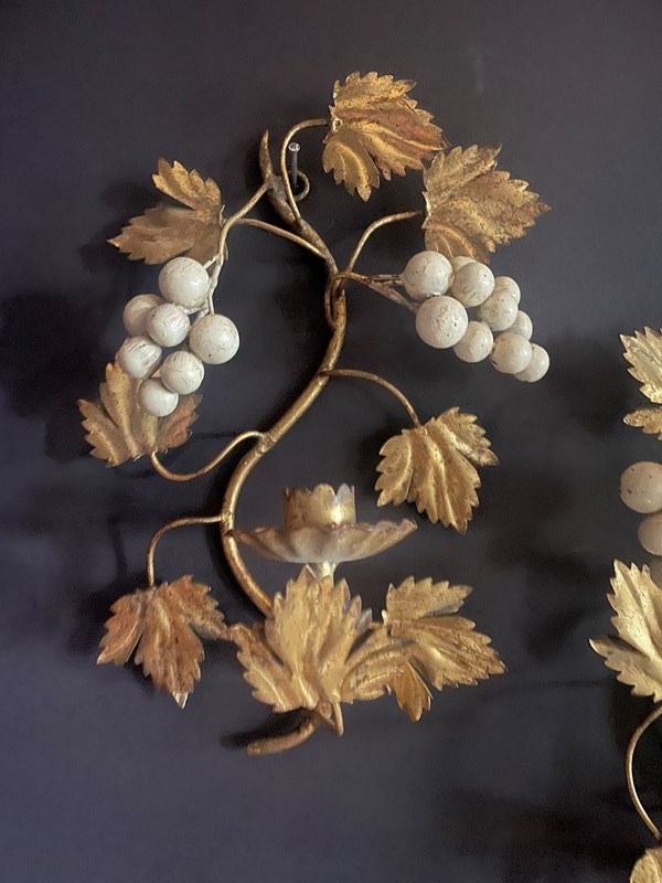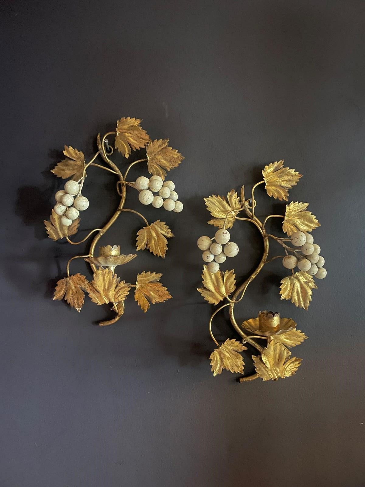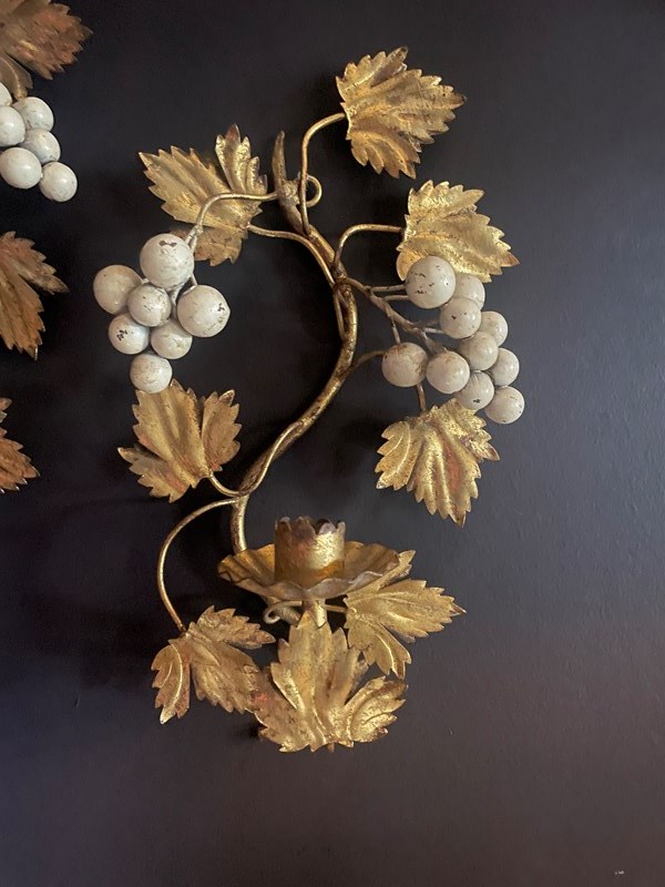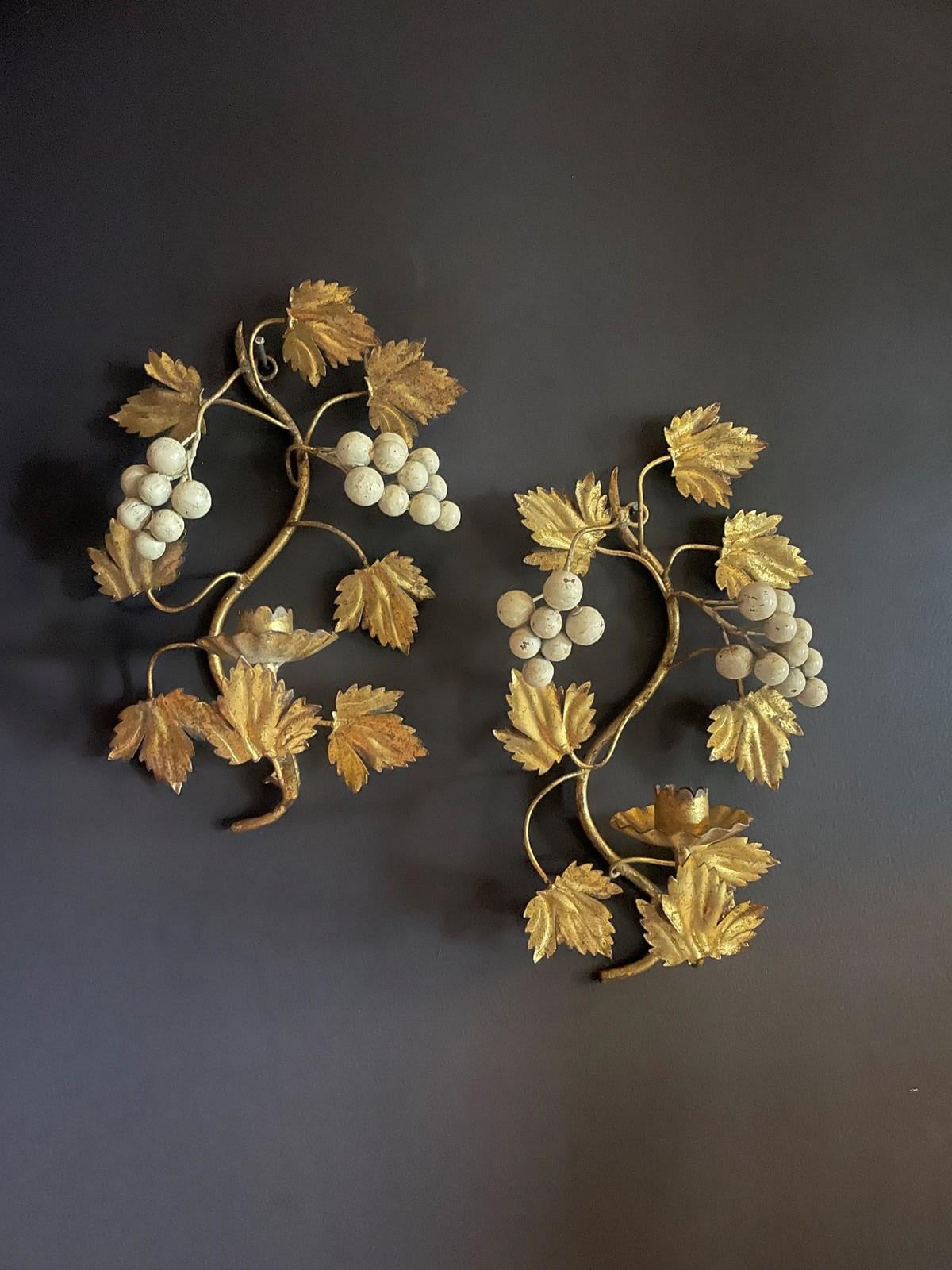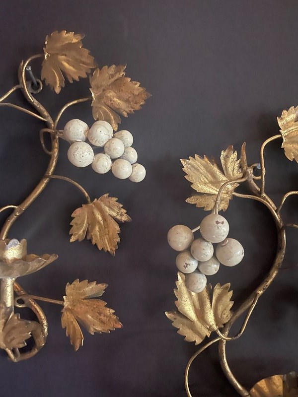 Gilt metal vine leaves with bunches of grapes, these have beautifully crafted.