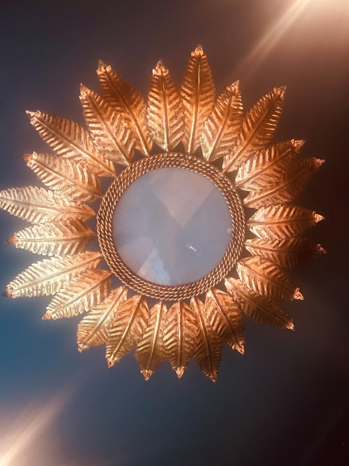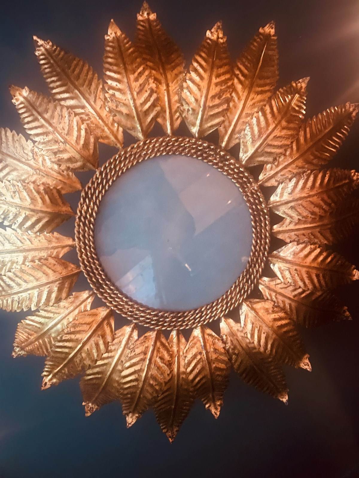 One tier of longer gilt leaves and another of smaller ones, these are becoming incredibly difficult to source. Made in Spain during the 50s & 60s, they work extremely well in rooms that require a statement light, but with limited ceiling height.