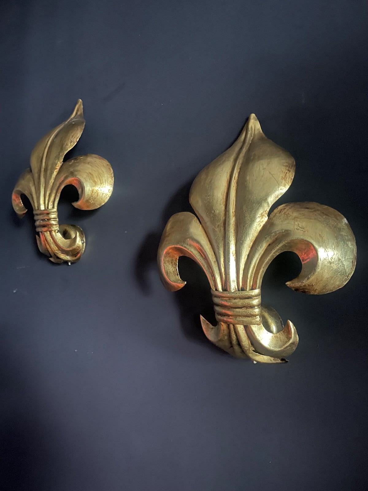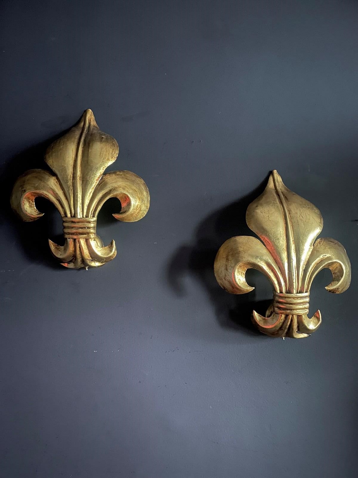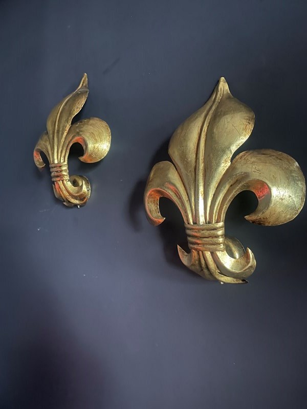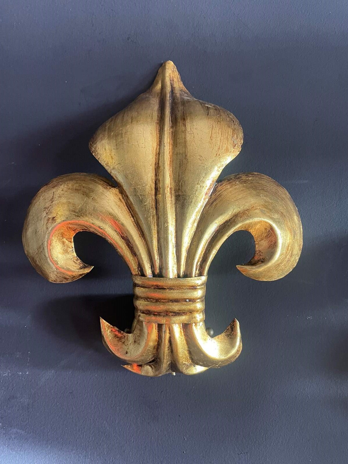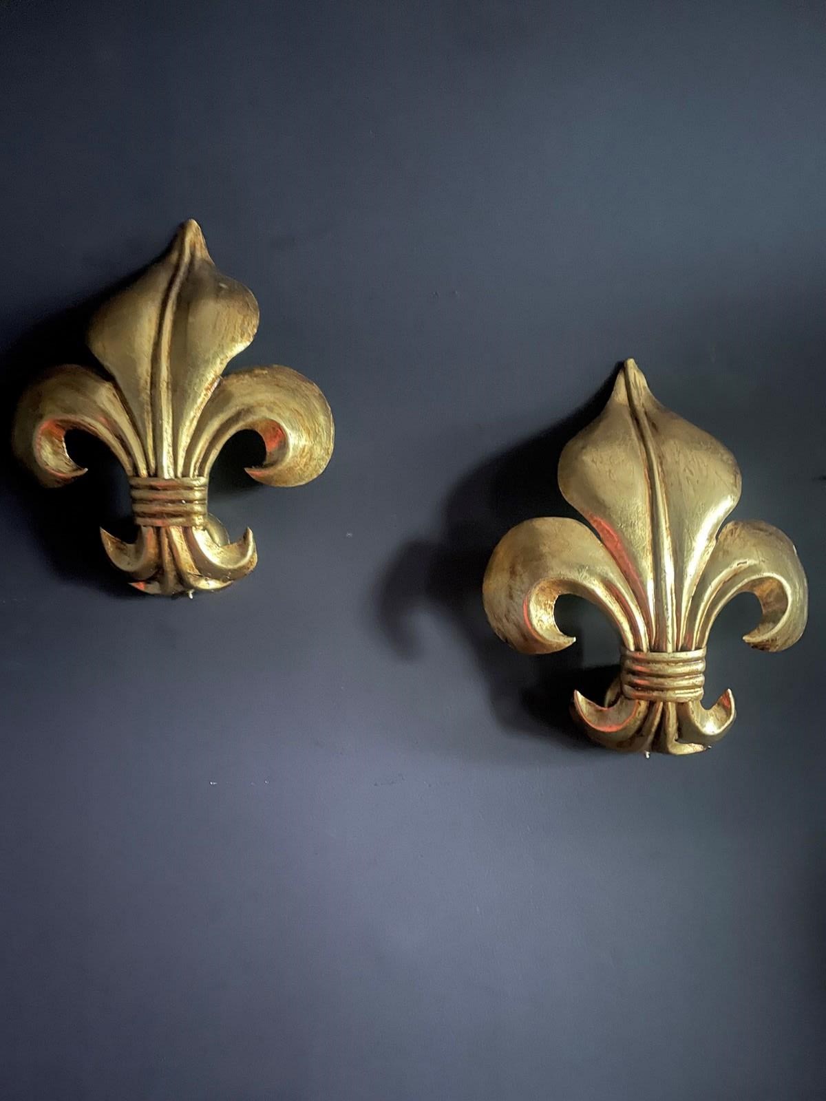 Wonderful pair of Italian fleur de lys wall lights.