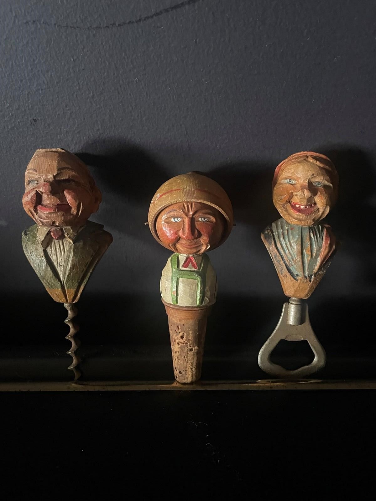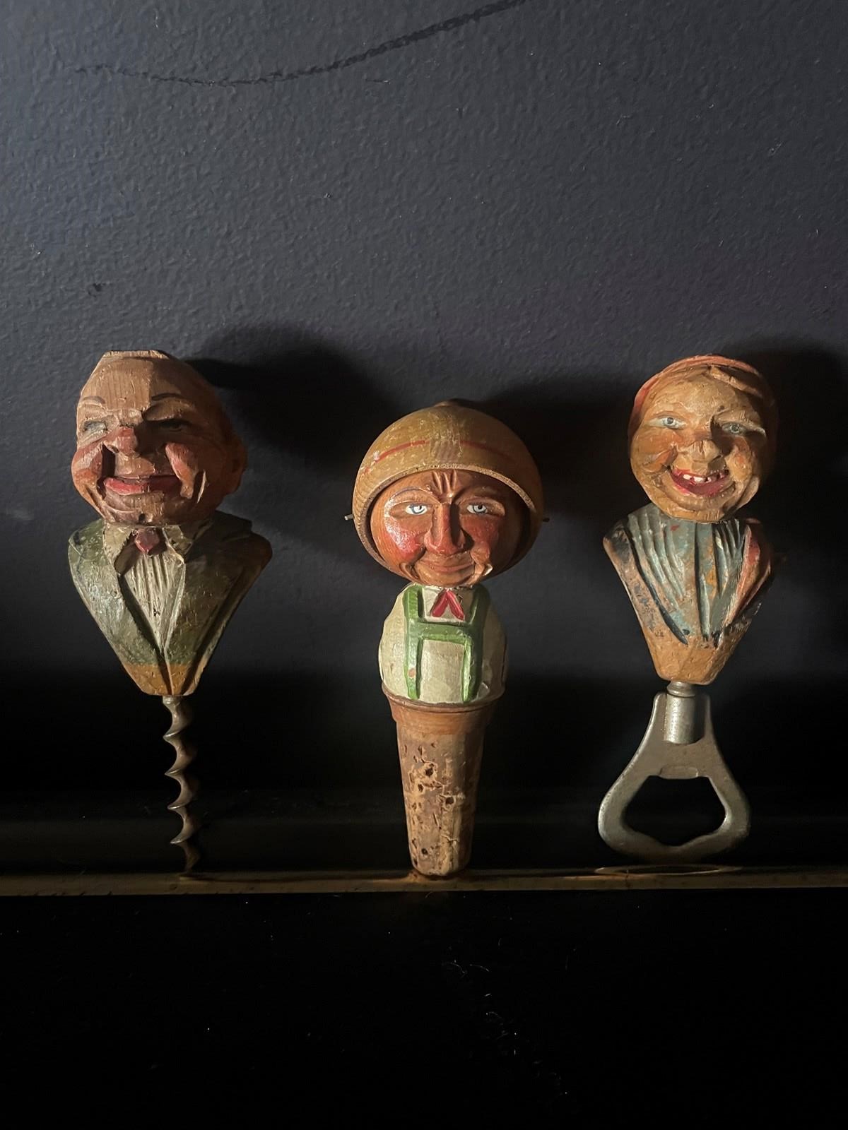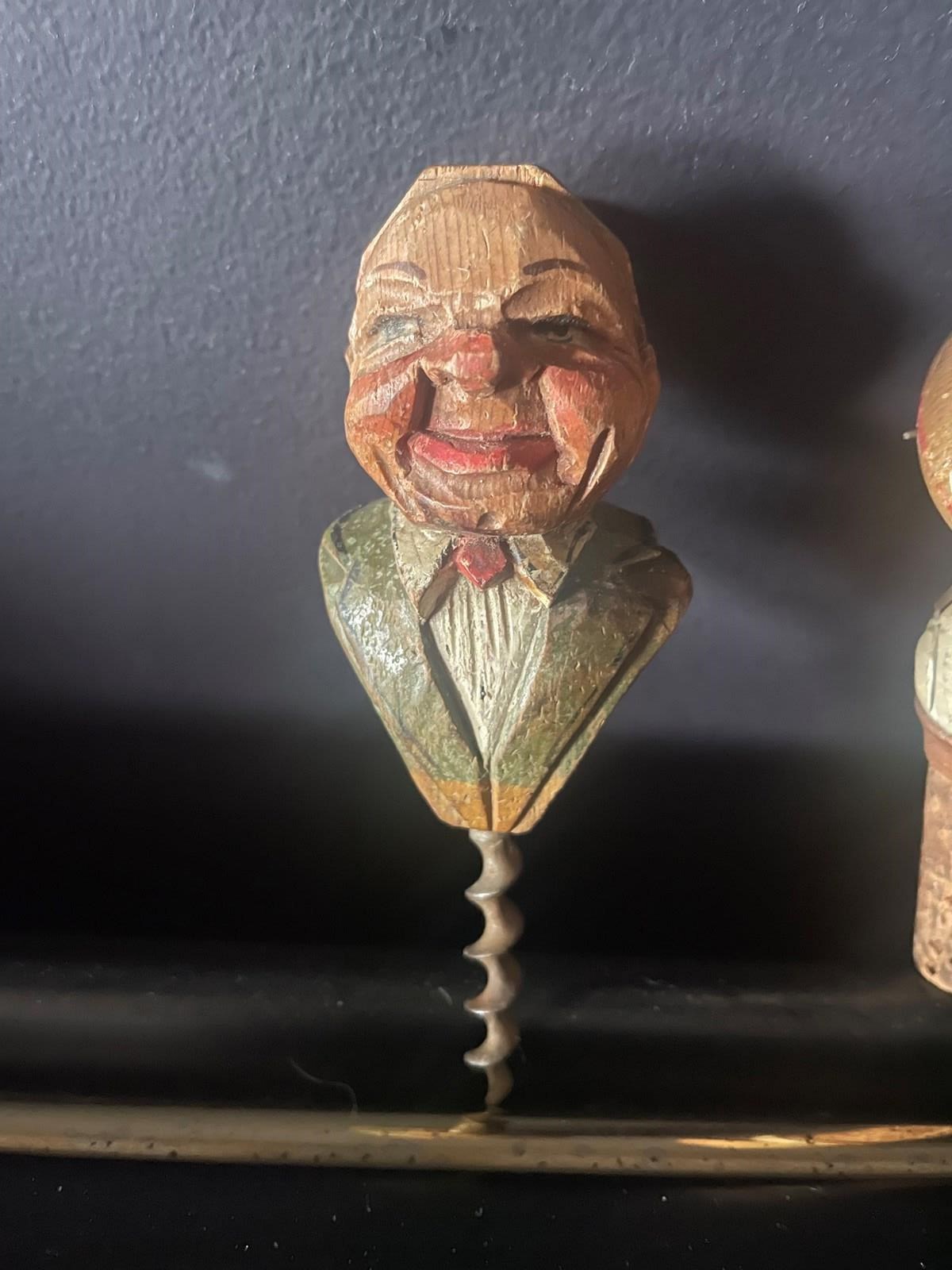 The bottle stopper has a rotating hat, presumably covering the face when too much wine has been drunk! 🥴