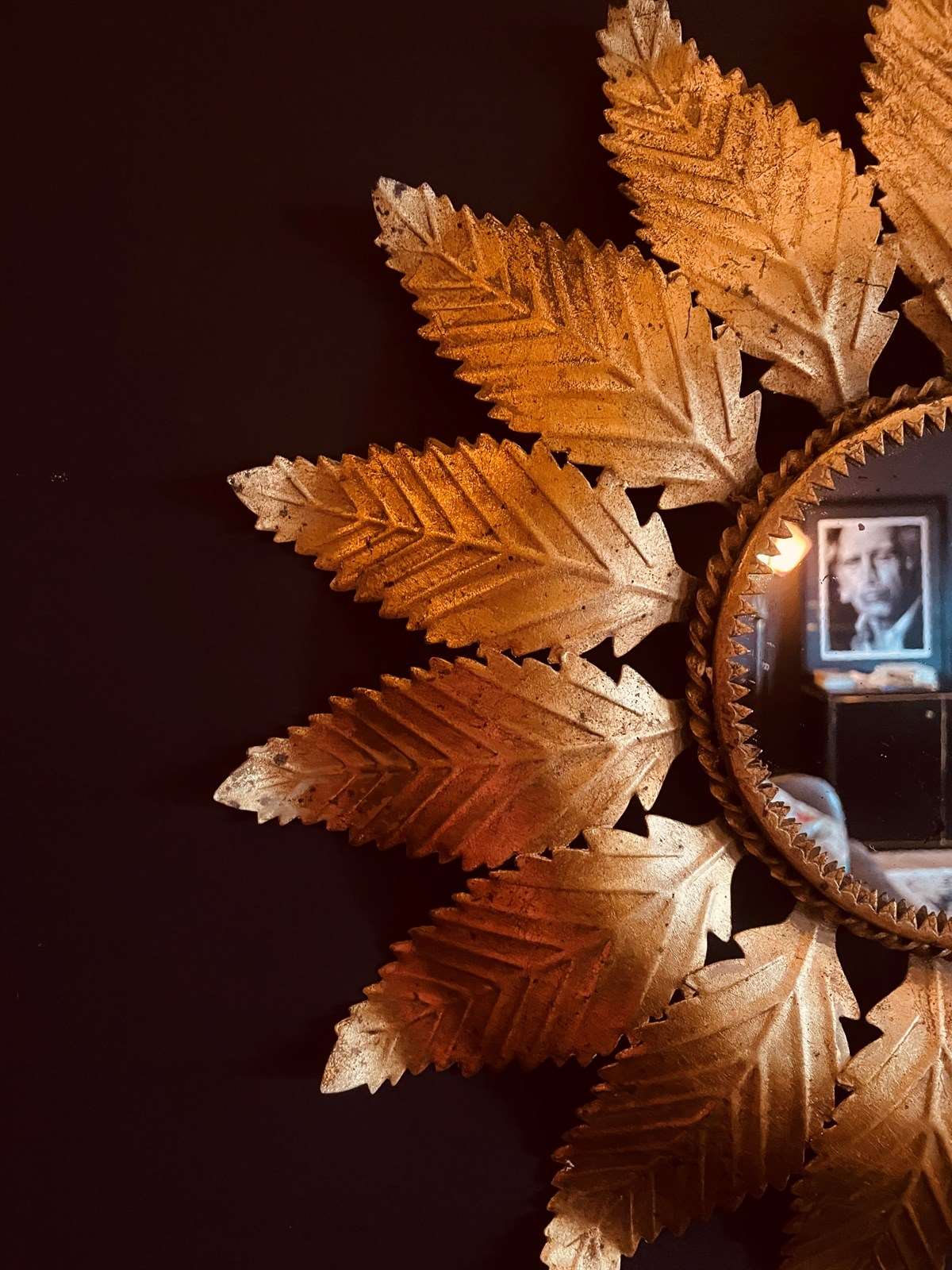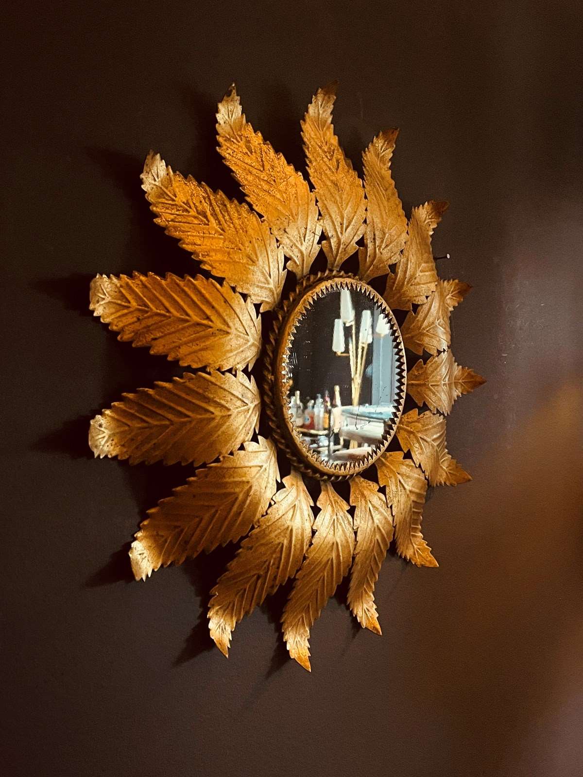 Beautiful Spanish gilt metal leaf mirror.