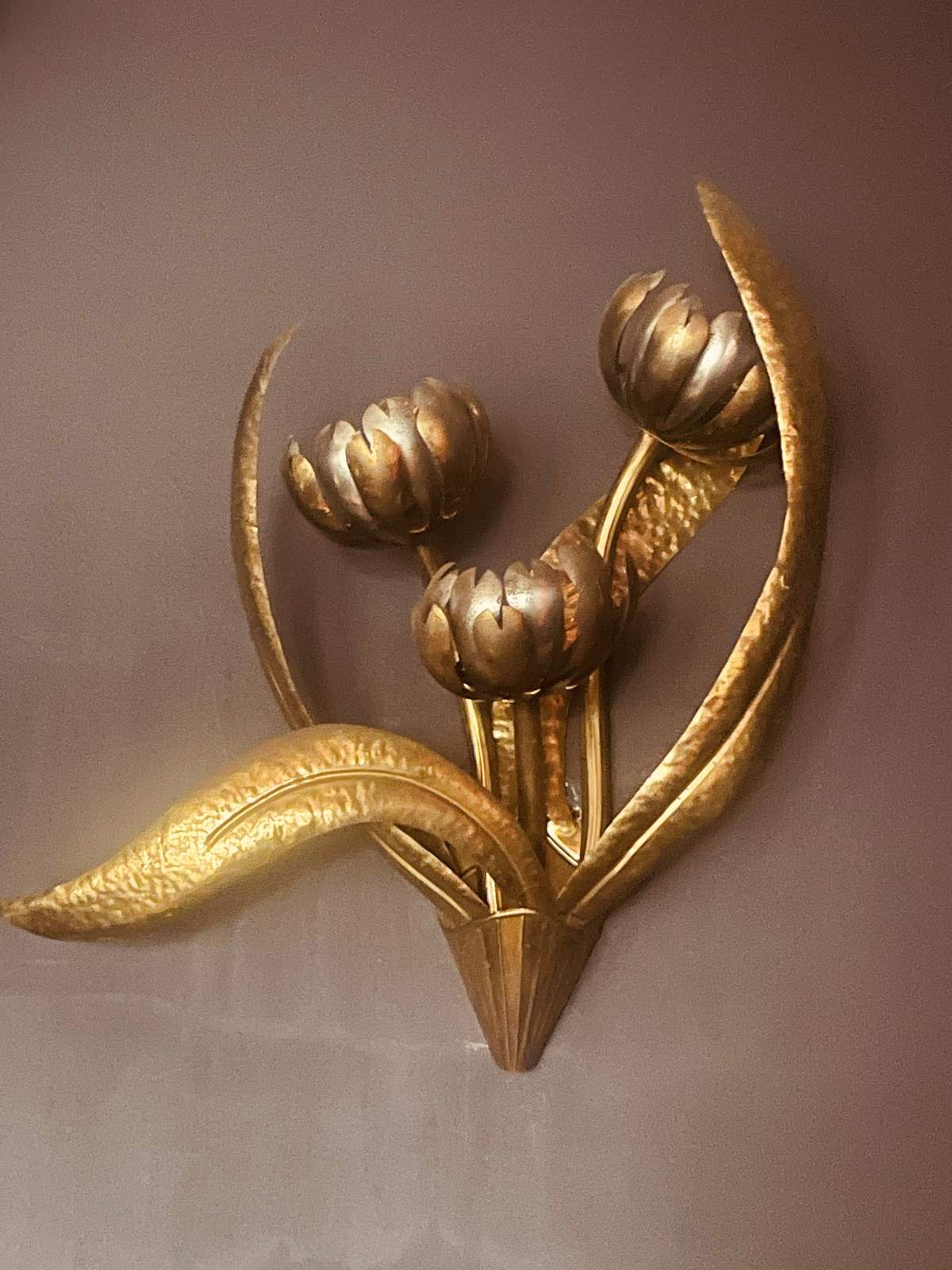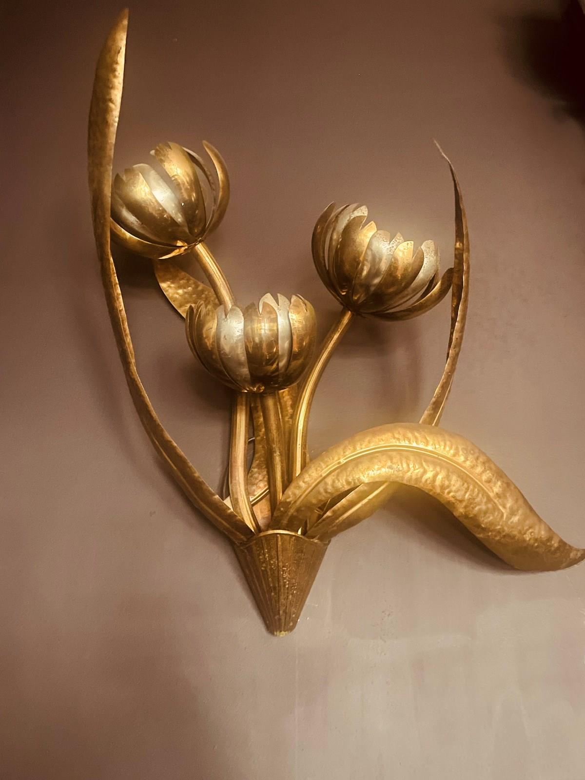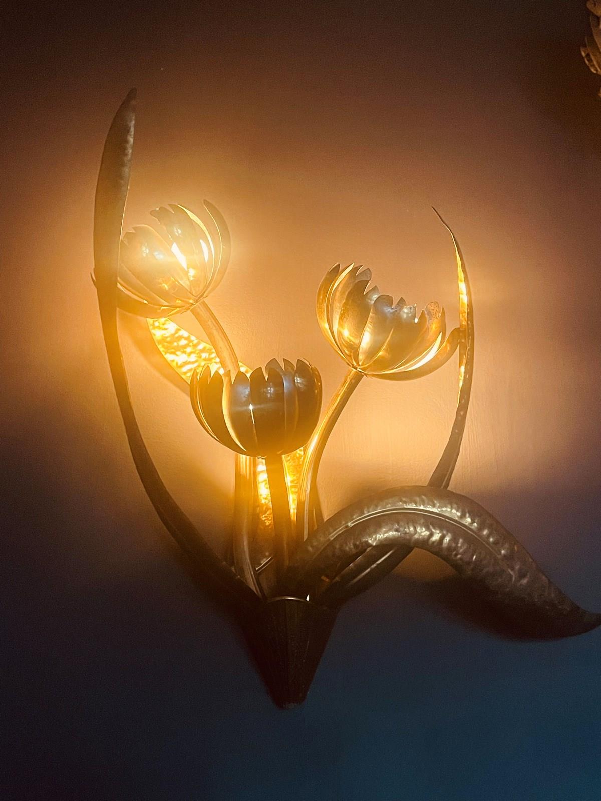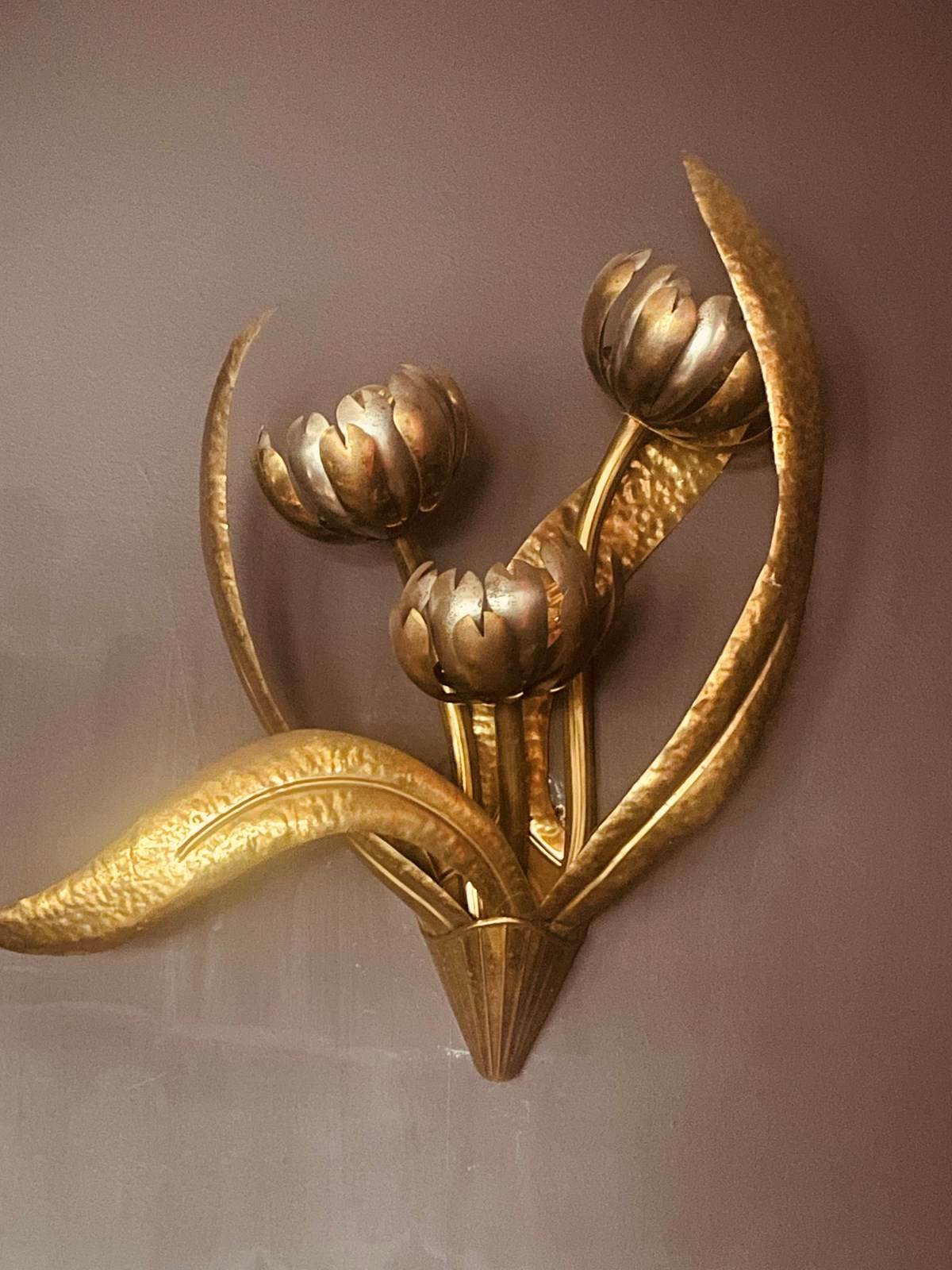 A very rare pair of wall lights designed by Isabelle and Richard Faure for the high quality french design house, Maison Honoré. Paris.