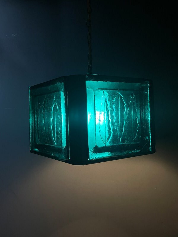 Wonderful glass and metal pendant designed by Erik Hoglund for the well-respected glassmaker, Boda Glasbruk.