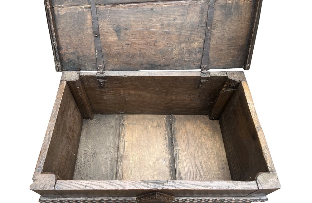 A charming 17th Century French provincial oak coffer, from Anjou in the Isere region.