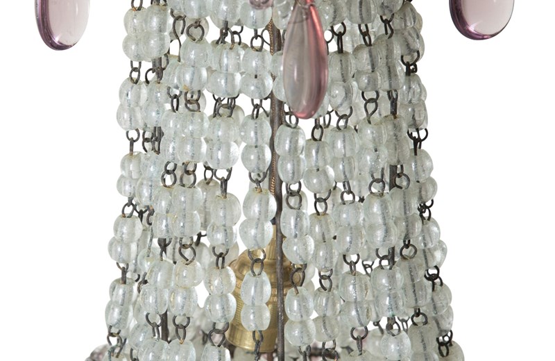 Charming, French hanging light with crystal beads and amethyst glass drops.