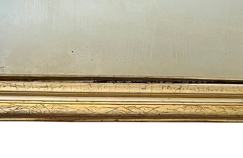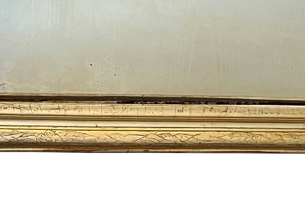 In a very pretty pale gilt frame with floral and foliate decoration.