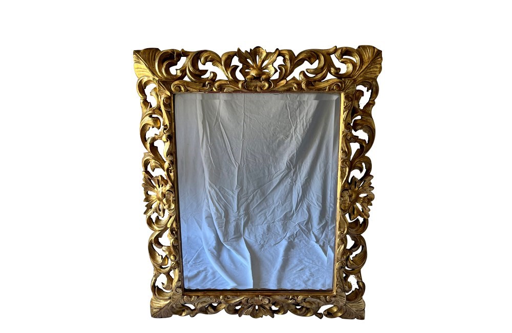 Beautiful large 19th Century Italian openwork carved giltwood framed mirror in the Louis XIV style.