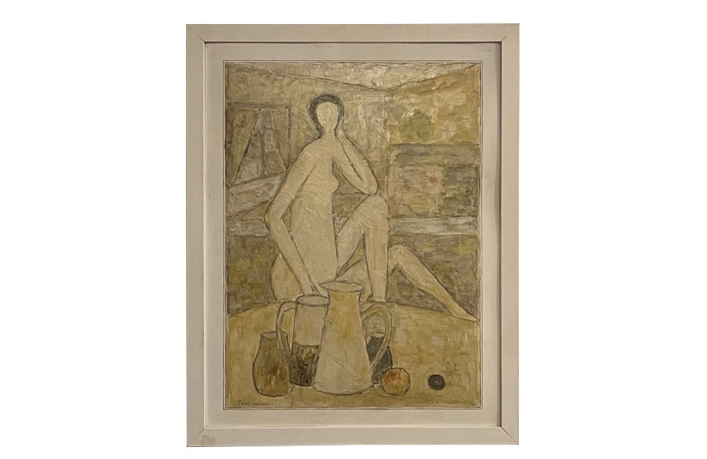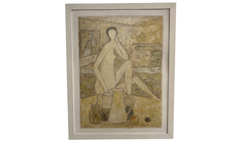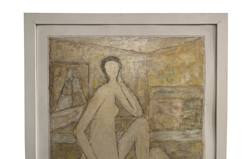 20Th Century French Oil Painting 'Seated Nude With Still Life'