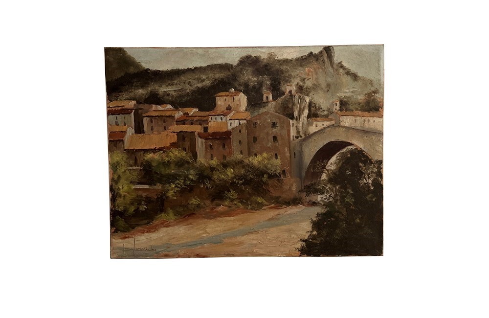 20Th Century French Oil Painting 'View Of The Bridge In Nyons '