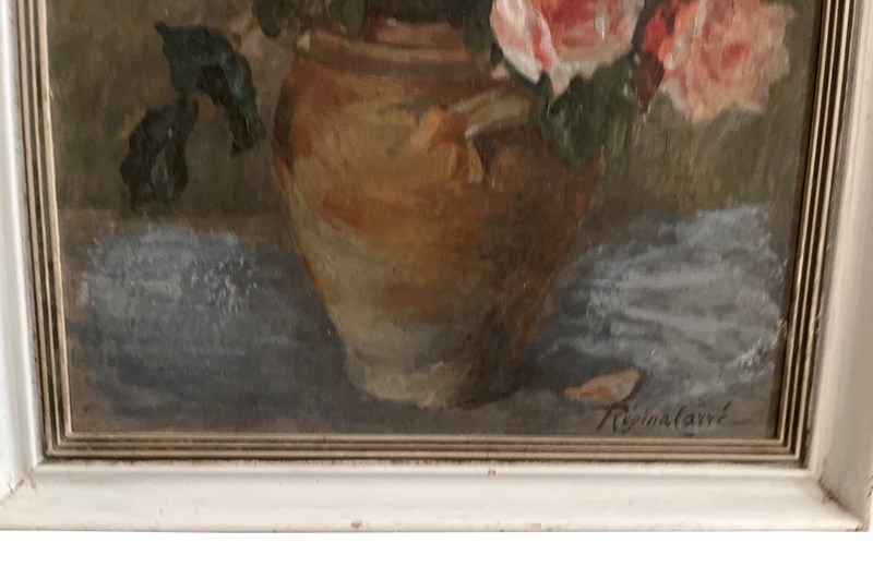 20Th Century French Still Life Painting 'Roses In Confit Pot'