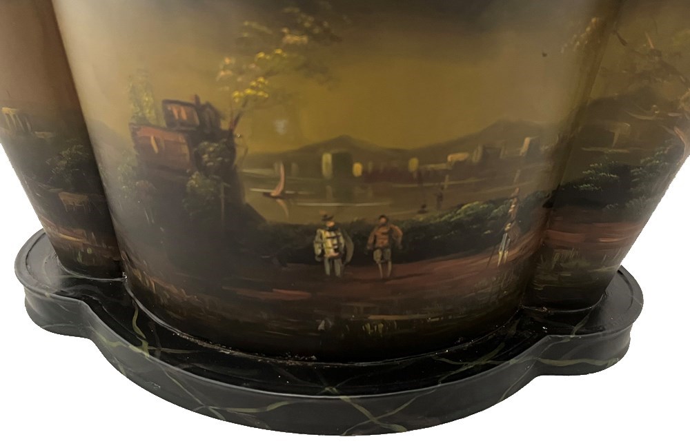 Decorative painted tole wine cooler or cache pot. Mid 20th century