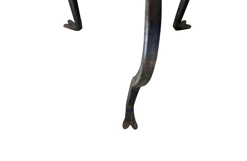 The downright bears a central ring and terminates on curved tripod base with unusual stylised webbed bird feet.