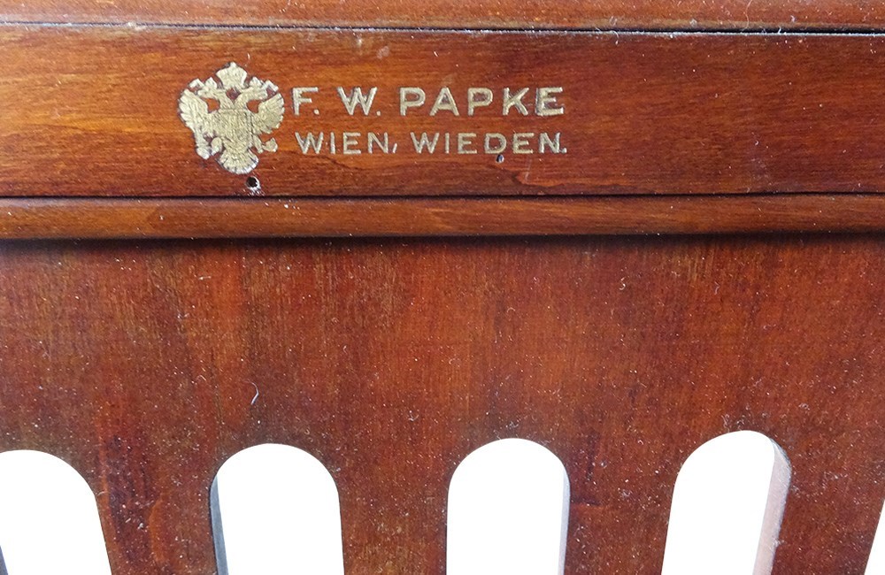 Stamped F.W PAPKE .WIEN , WIEDEN. FW Papke was an important company in renown Viennese leatherwork, gallantry and art bookbinding during the monarchy . The company was known for the quality of its products. It was located on Mozartplatz (Mozartgasse 4) in Vienna's 4th district of Wieden .The company was founded in 1841 by Karl Papke, a native of Greifswald. His successor as head of the company was his son F. W Papke. Papke produced innumerable works for the personal use of the emperor, which received the appreciative praise of this distinguished client. Papke was also Archduke Eugen's chamber supplier.