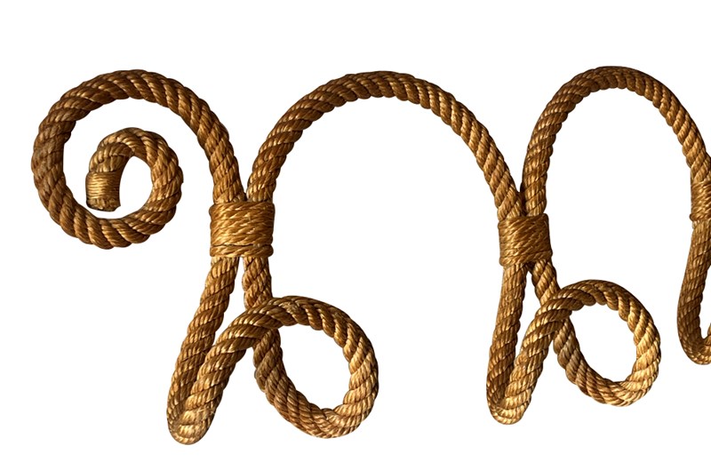 Minet and Audoux spent much of their time in the Provence region, a centre of creativity where other artists such as Pablo Picasso found endless inspiration. They created everything from lighting to lounge chairs and end tables that reflected a nautical theme and coastal living. Minet and Audoux’s had retail outlet in the seaside resort town of Golfe-Juan. The pair also incorporated woven rope into larger pieces such as armchairs and side tables. A number of Audoux-Minet’s seating pieces are on display at the Maison Dumas in St. Tropez, France.