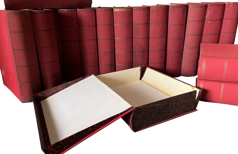 Collection Of 19 Red Fabric Bound Faux Book Files
