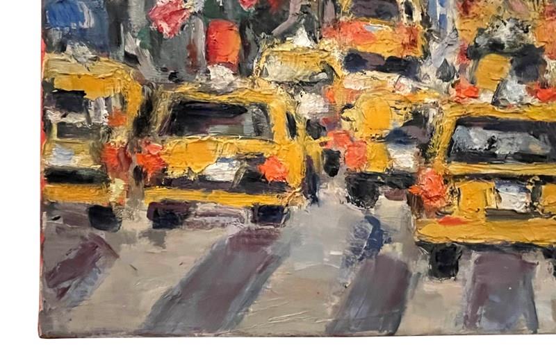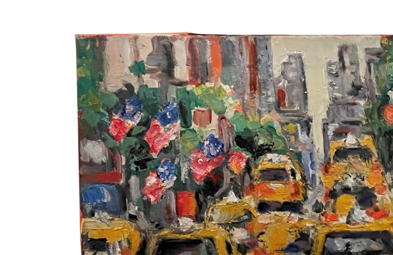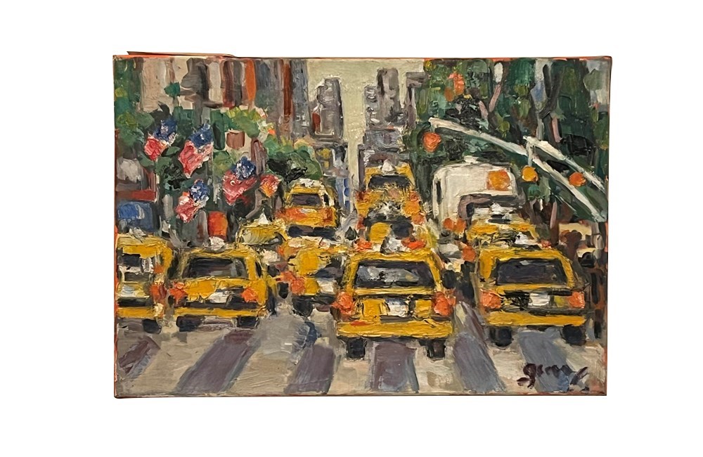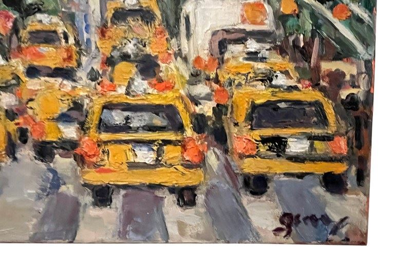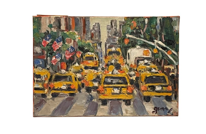 Oil On Canvas Painting 'The Taxis, New York' By Gemy