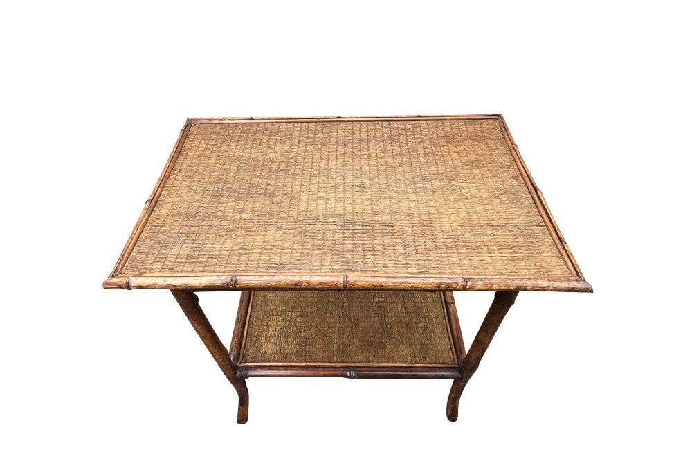 Early 20Th Century Bamboo And Rattan Side Table