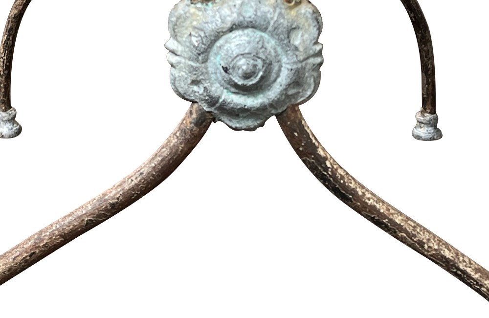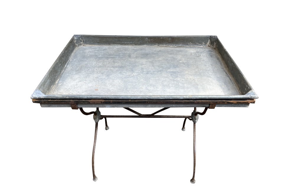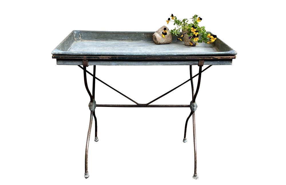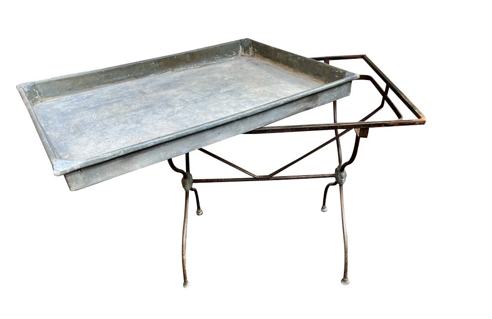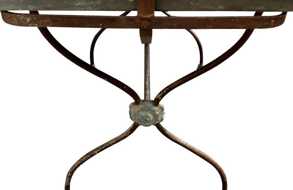 Early 20th Century French florist’s table with recessed zinc tray set within an elegant wrought iron base.