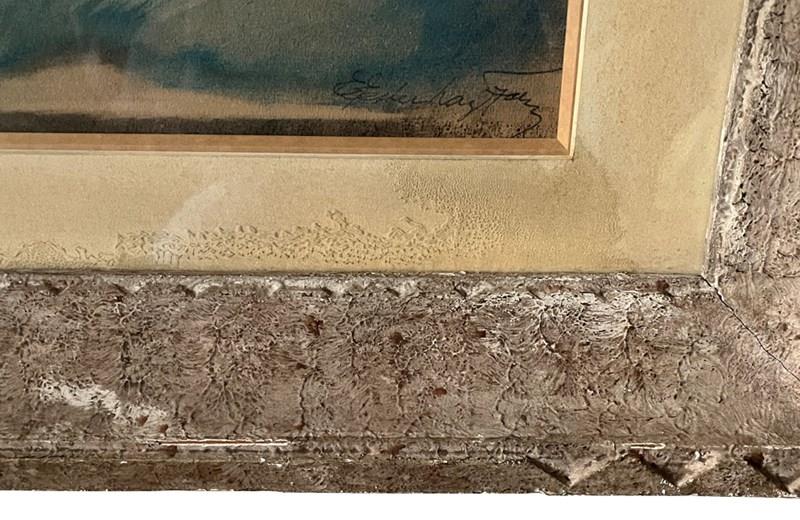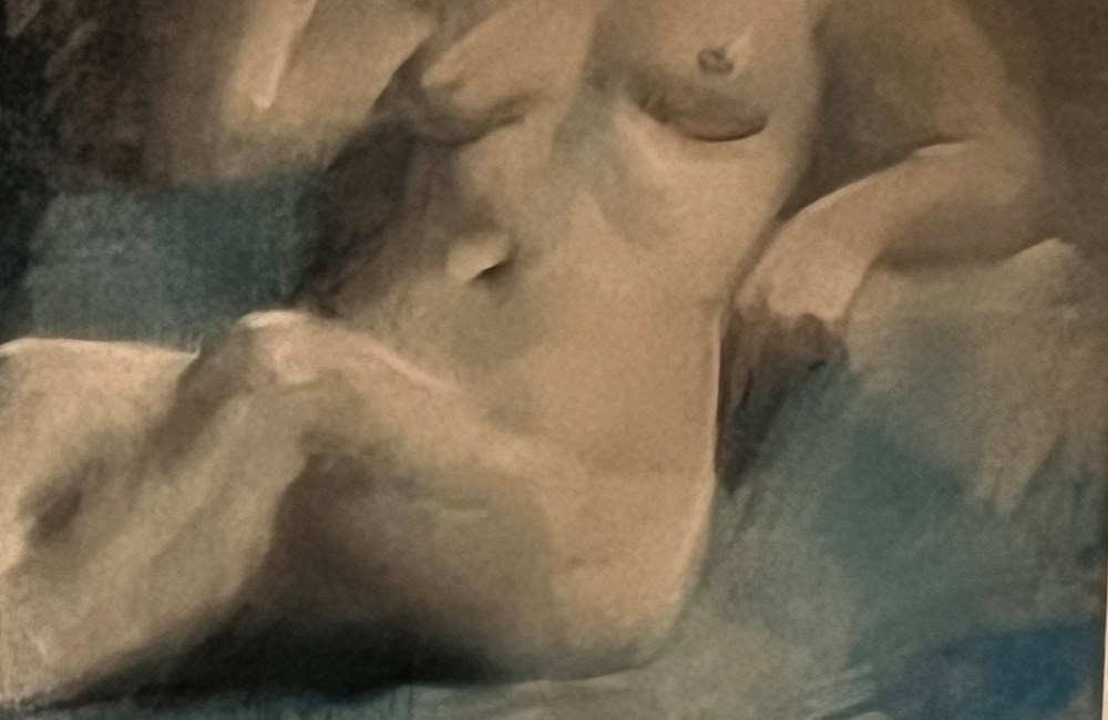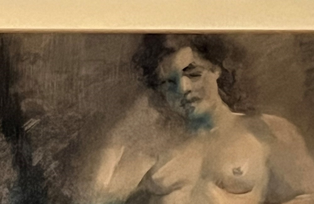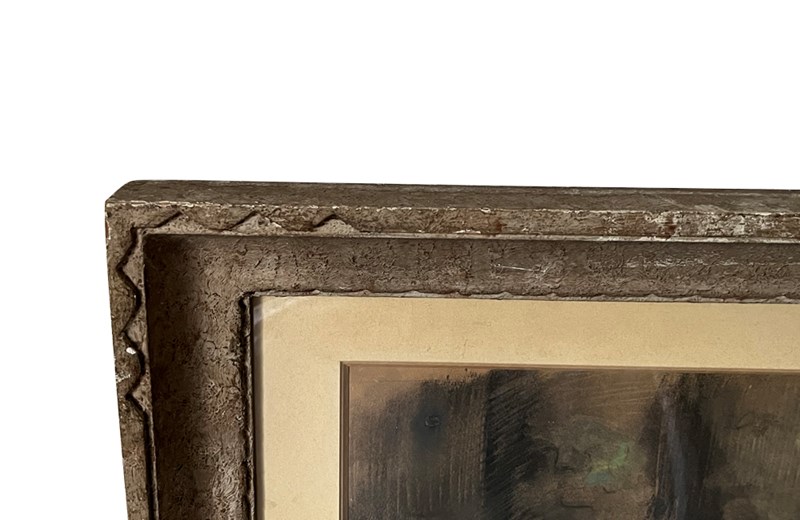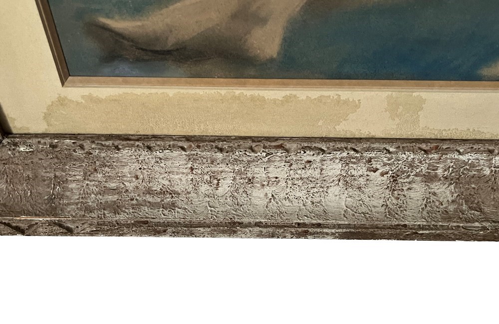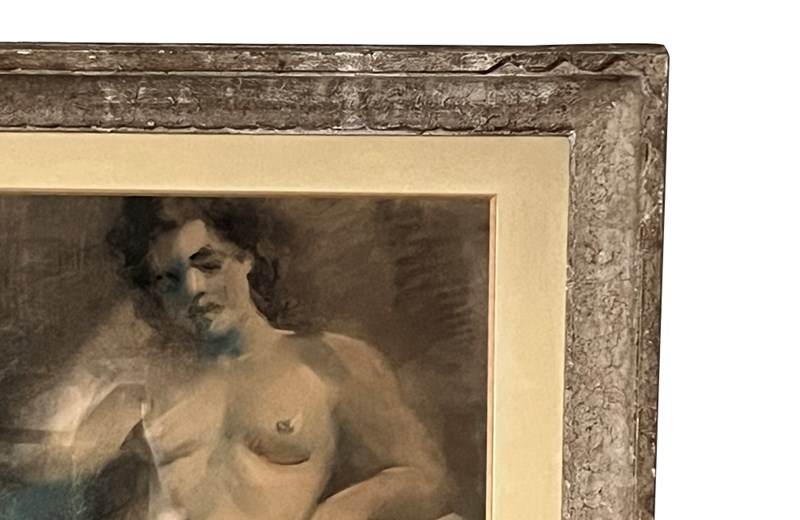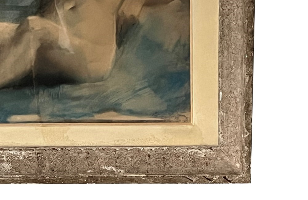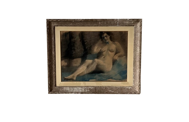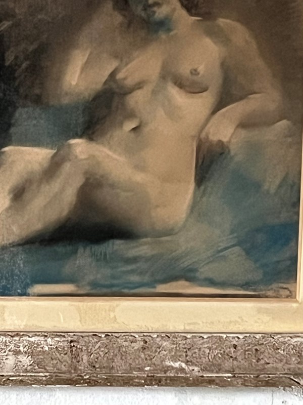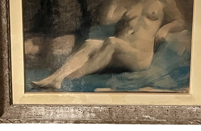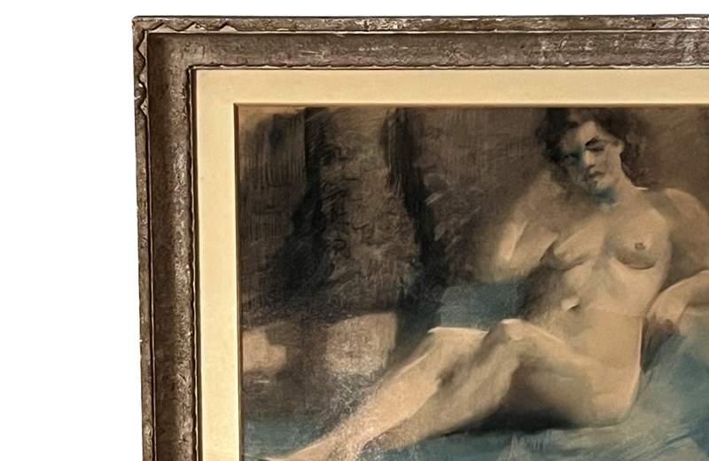 Mid-20th Century French pastel of a reclining female nude in carved frame.