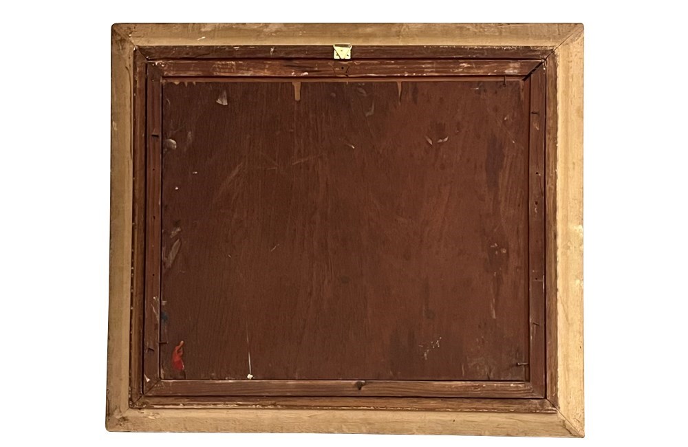 In a carved wooden frame of the period. Signed to the lower left by the artist [Undeciphered].