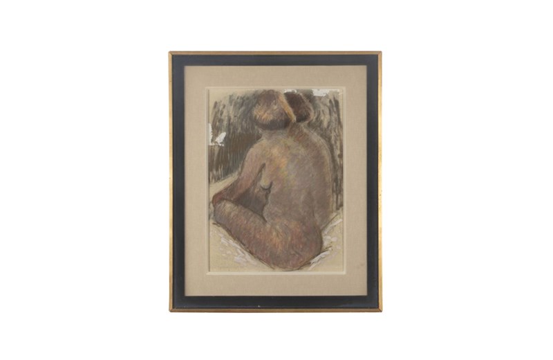 Beautiful portrait of a seated nude female figure. Signed by the artist, Henri Andre Martin to the lower right