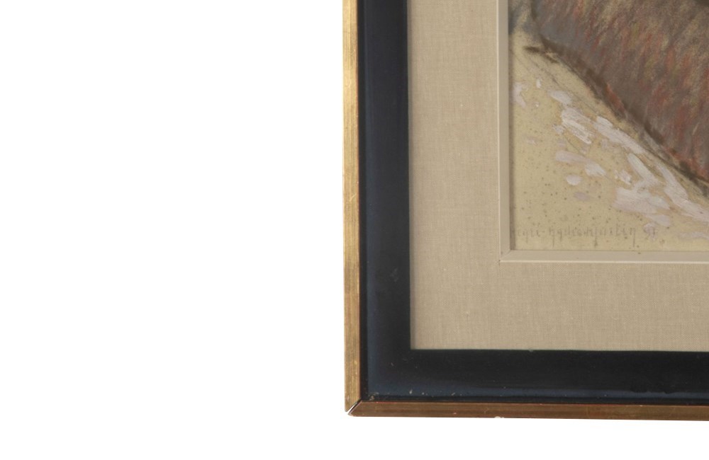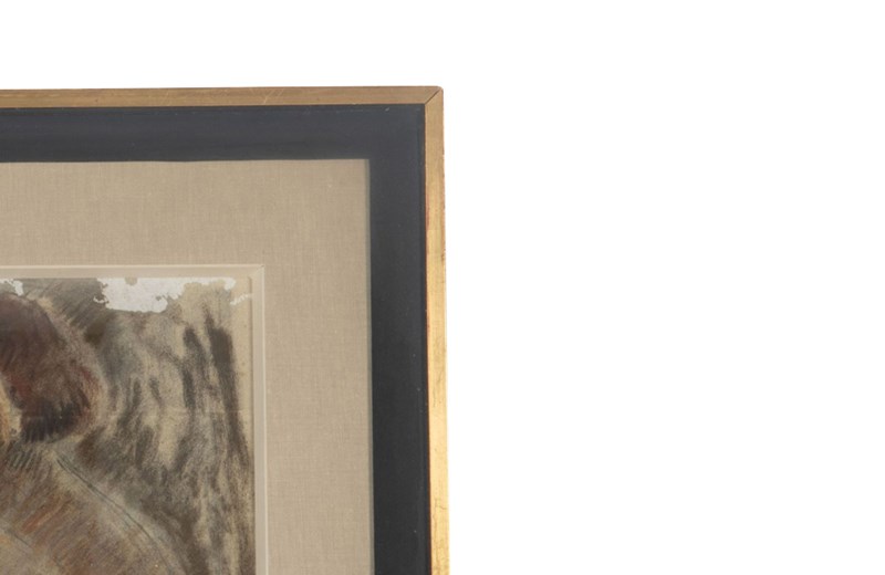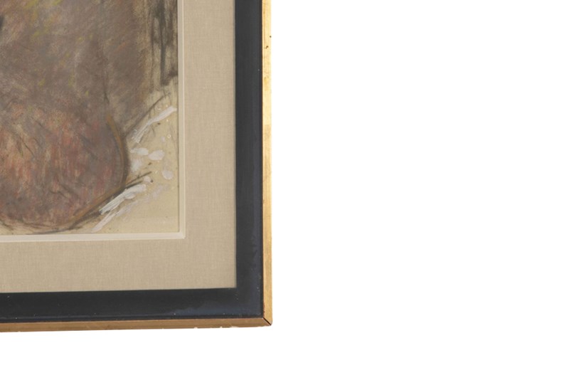 Gouache and charcoal on card . In a recessed frame behind glass.