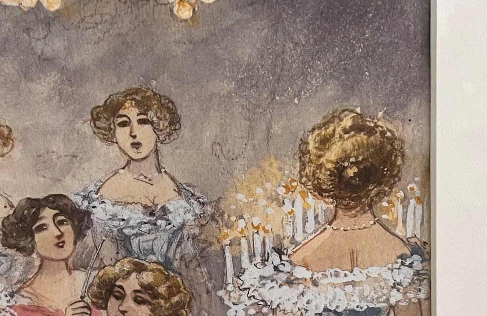 The work reflects the influence of Montmartre nightlife and café-concert culture, capturing the glamour and intimacy of fin-de-siècle entertainment. The delicate palette, expressive figures, and refined execution suggest the hand of a professional commercial illustrator working in the French tradition.