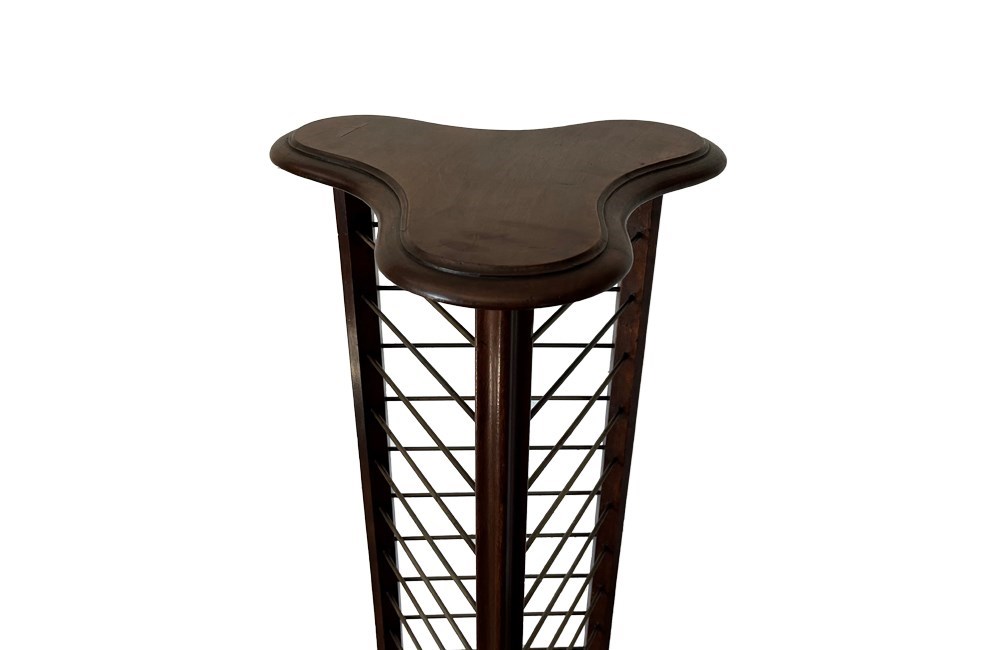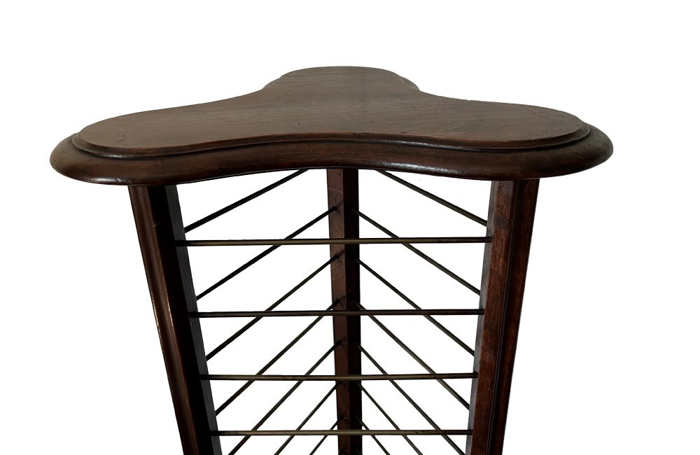 This handsome plate rack is composed of mahogany with 18 brass plate rails.