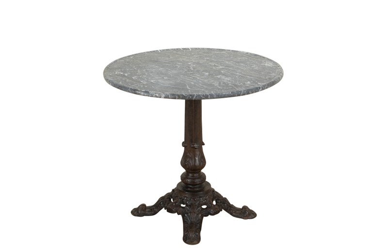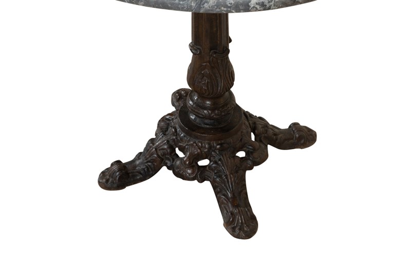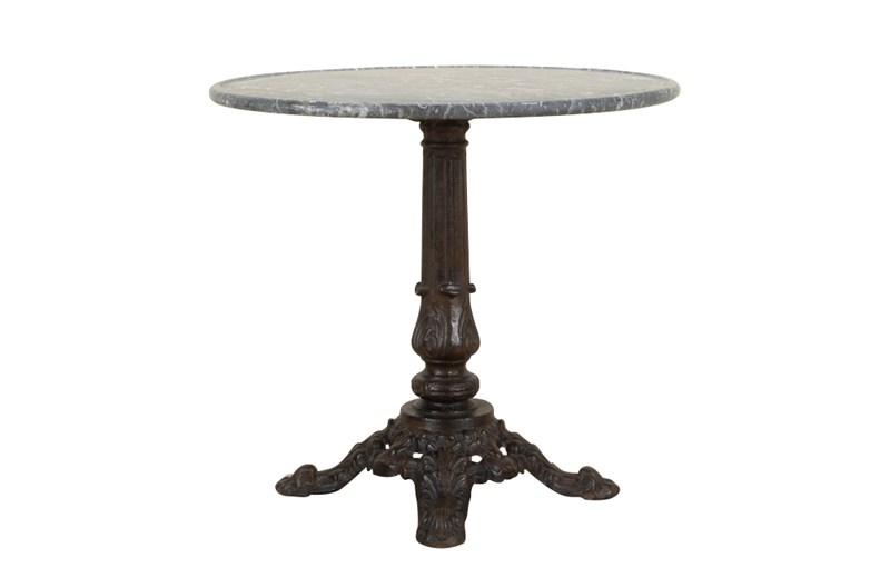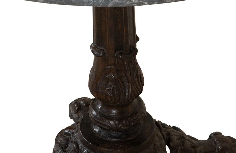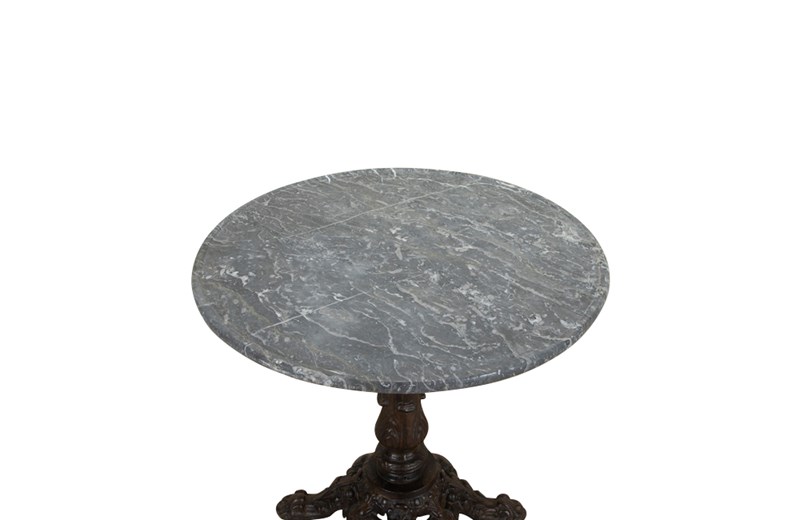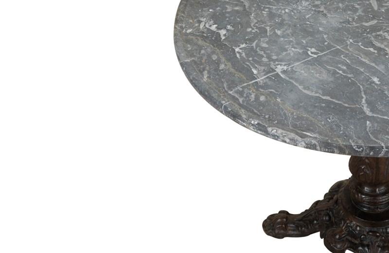 With acanthus leaf motifs and large circular grey marble top.Circa 1900