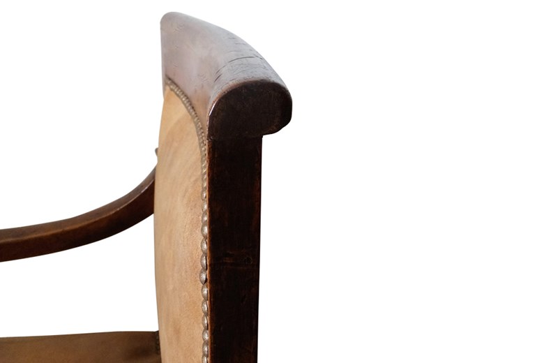 French, walnut desk chair upholstered in leather and studding.