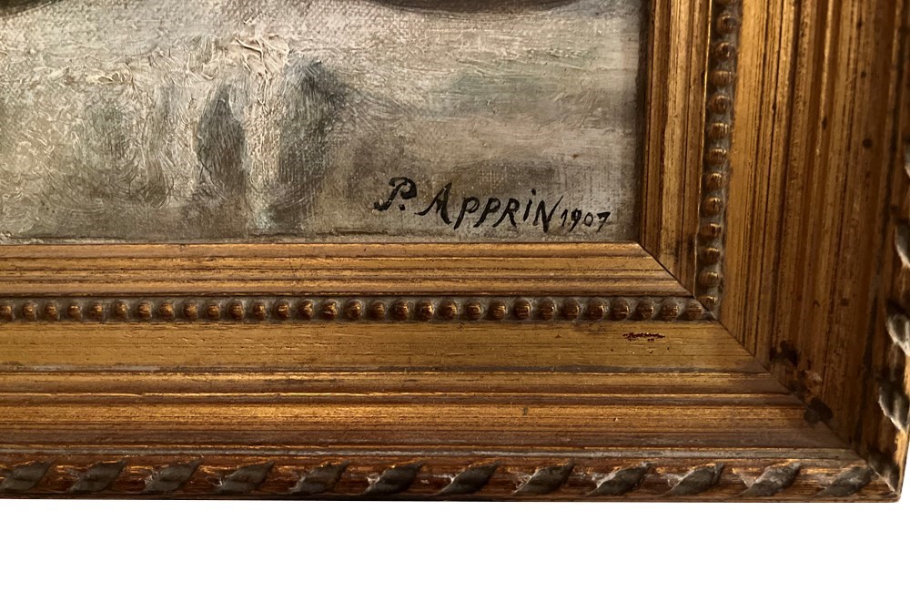 In a gilt frame. Signed and dated to the lower right by the artist P. Apprin, 1907.