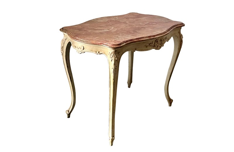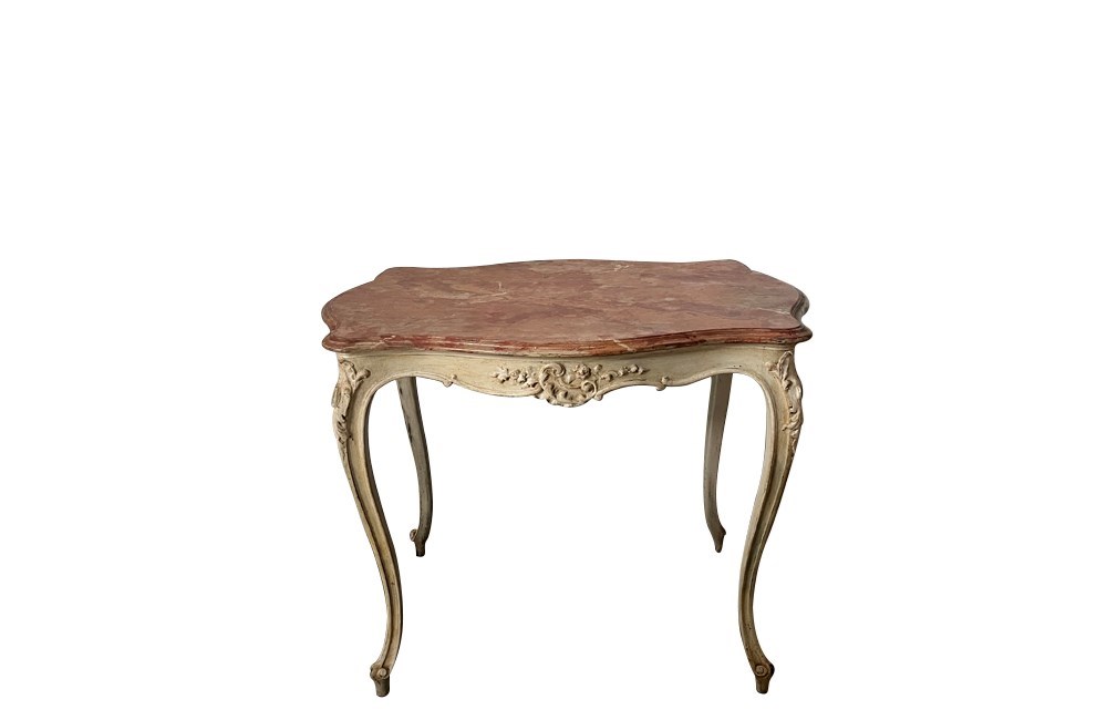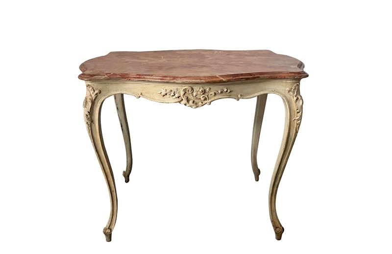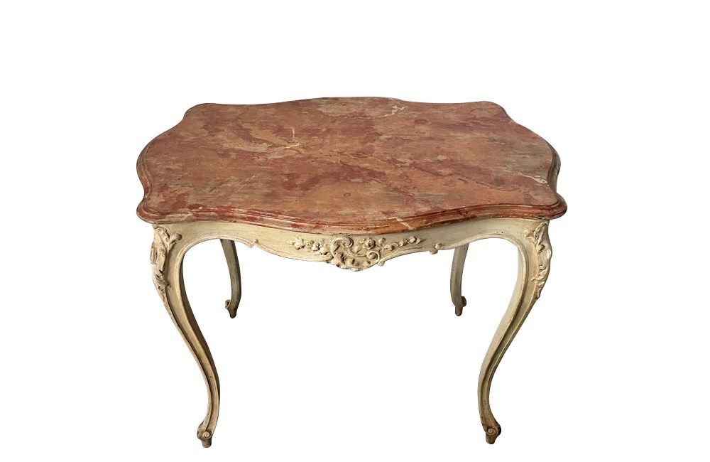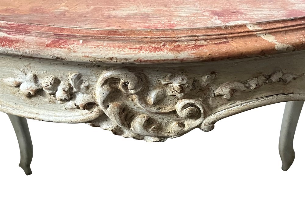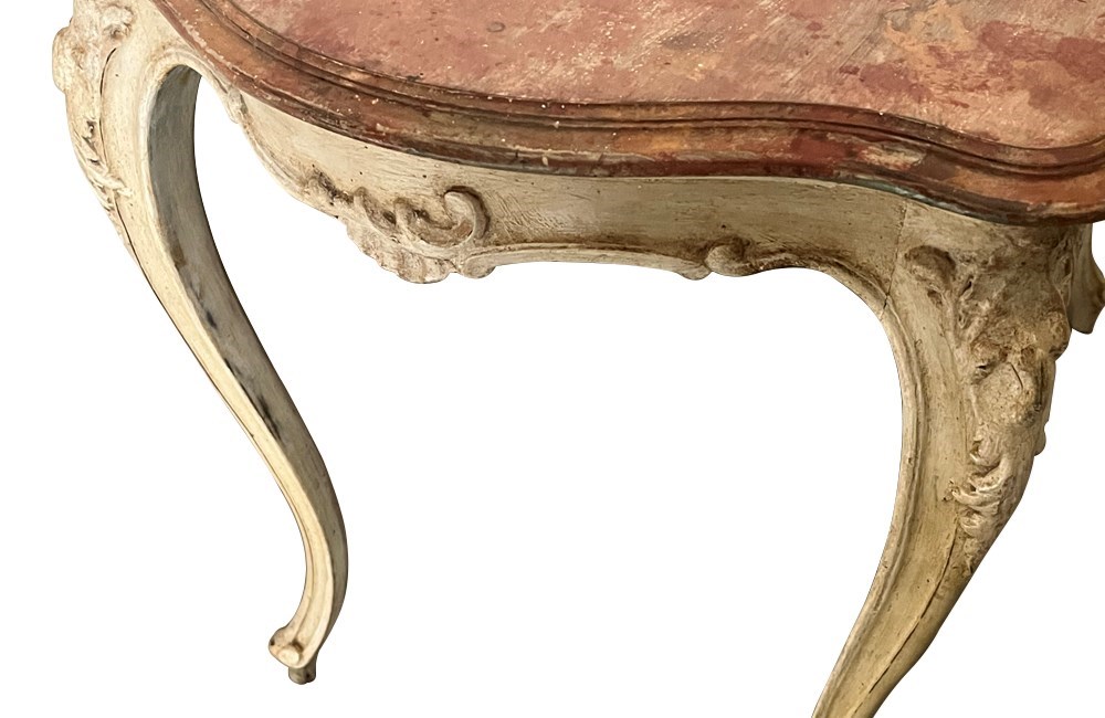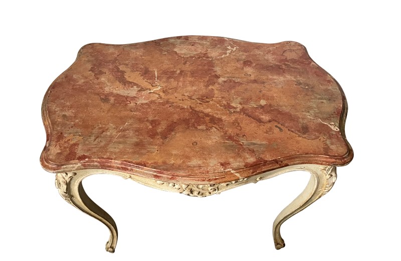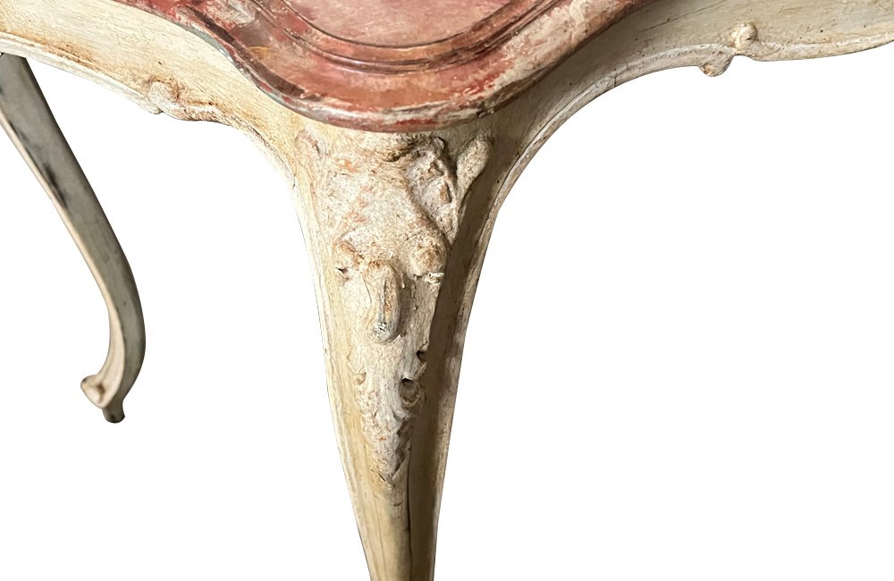 With trompe l'oeil faux marble painted shaped top and carved to all sides.
