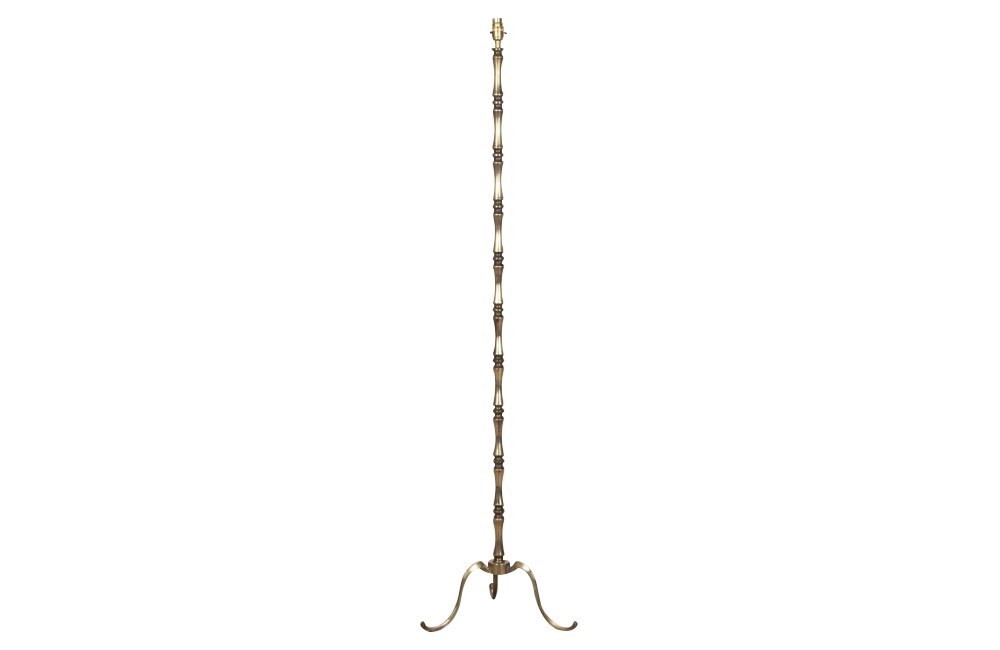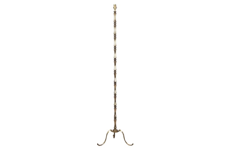 Mid 20th Century French stylish brass standard lamp with segmented stem.The upright terminates on an elegant simple tripod base.