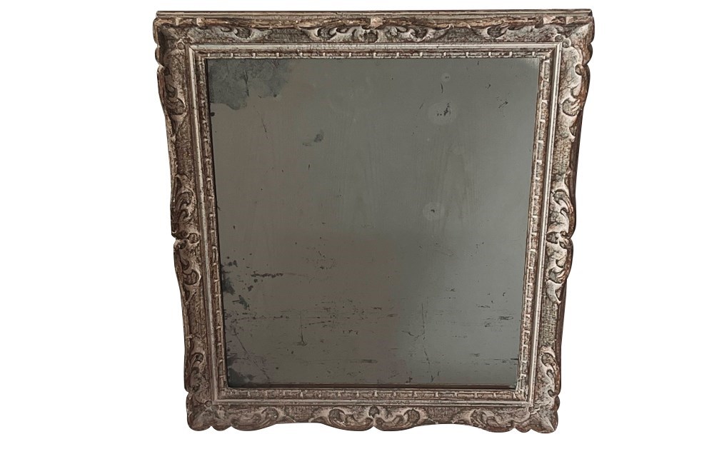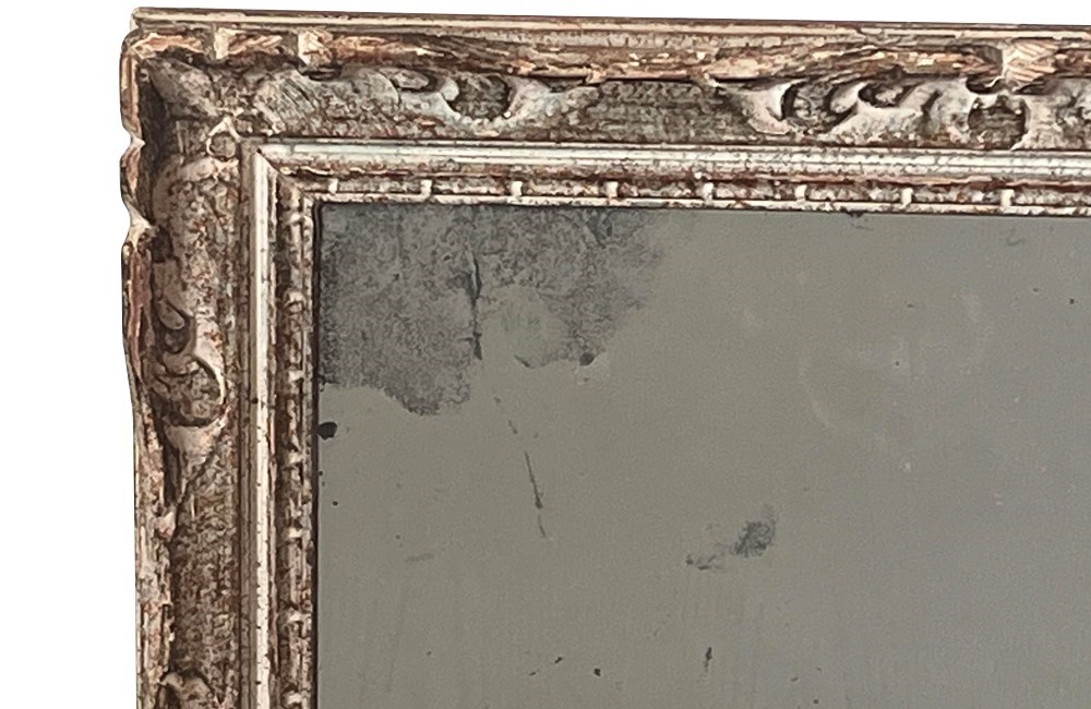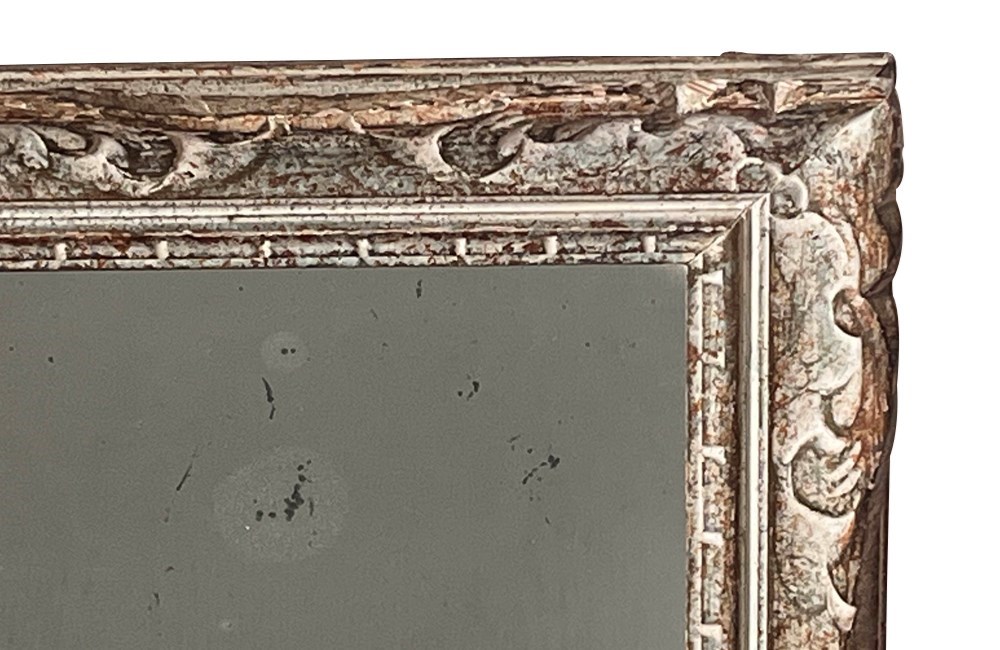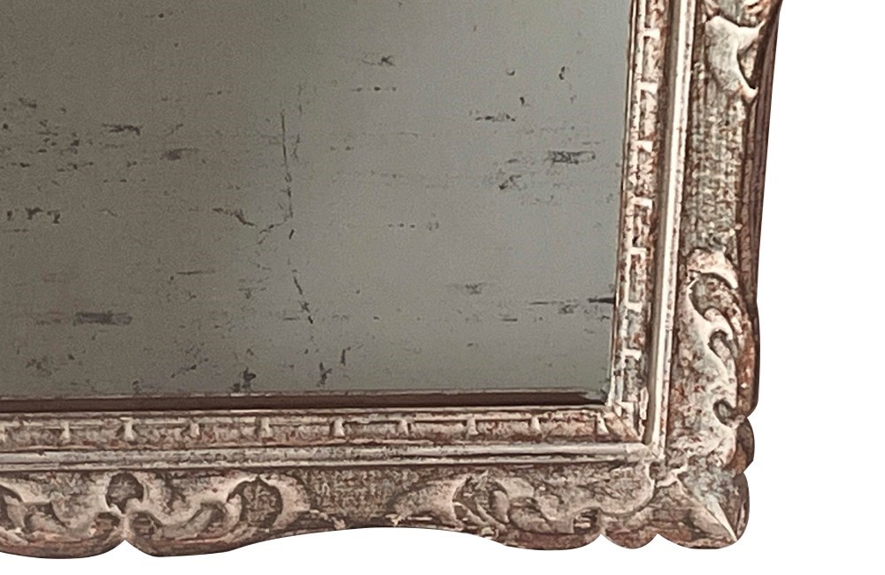 Beautiful 20th Century French carved framed mirror with lovely old foxed mirror glass and original paint.