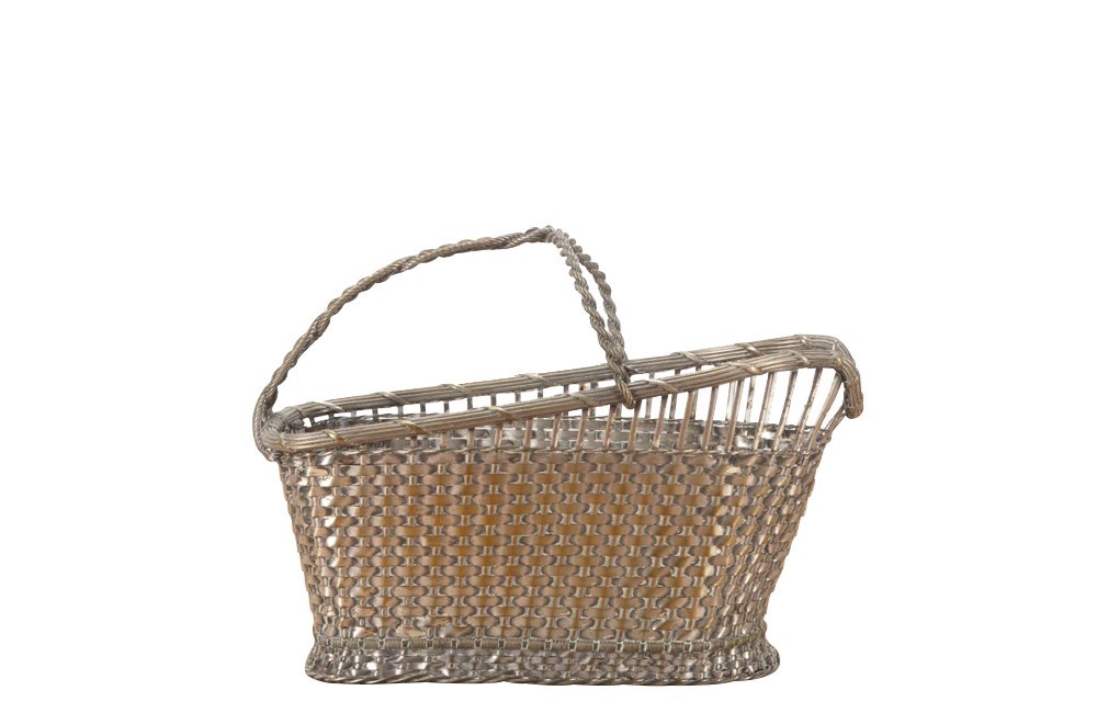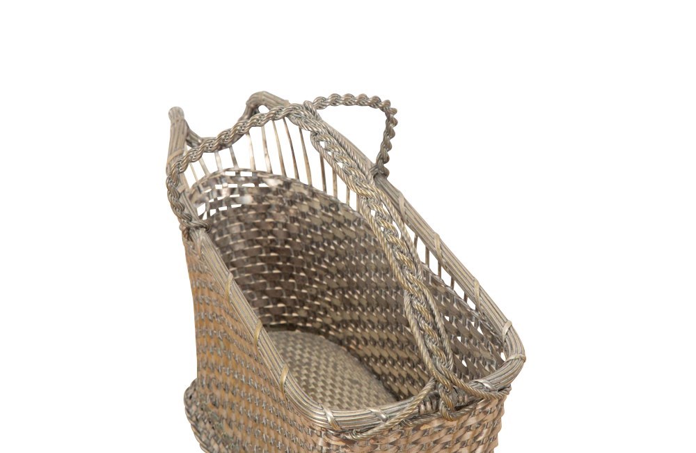 Mid 20th Century French woven silverplate bottle holder. Lovely worn silverplate.