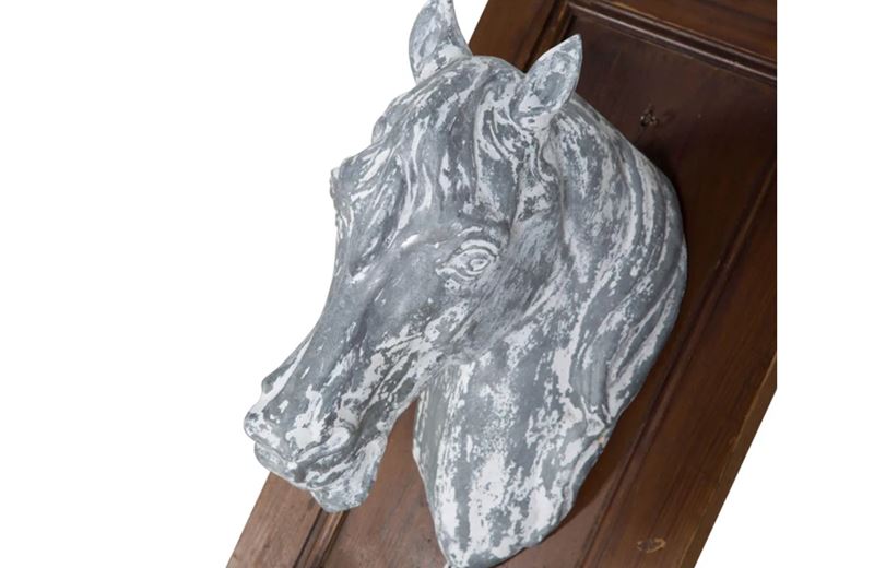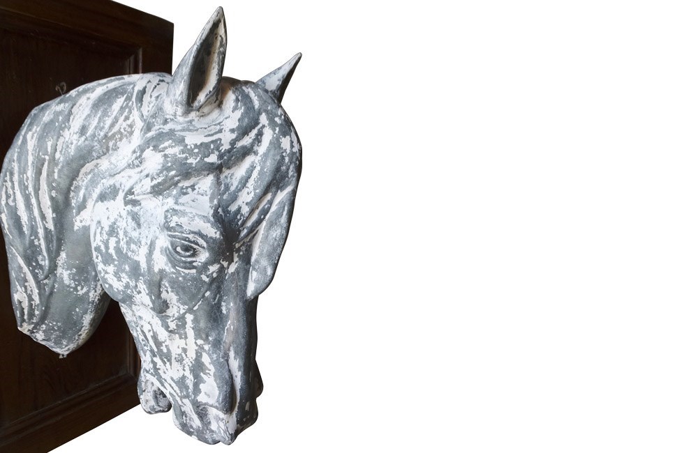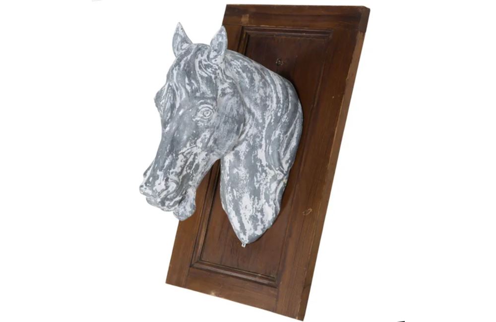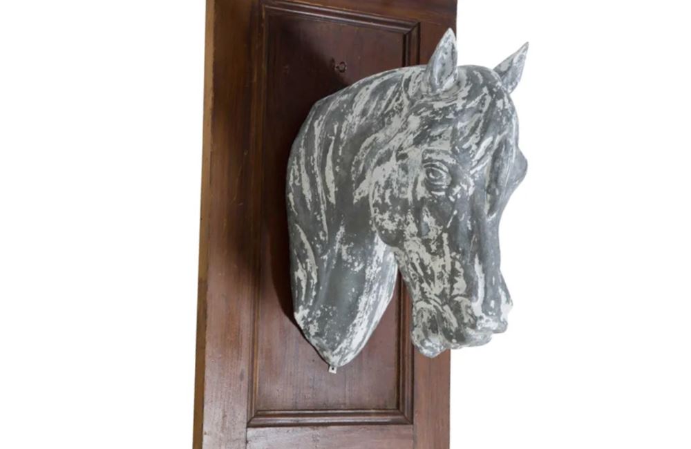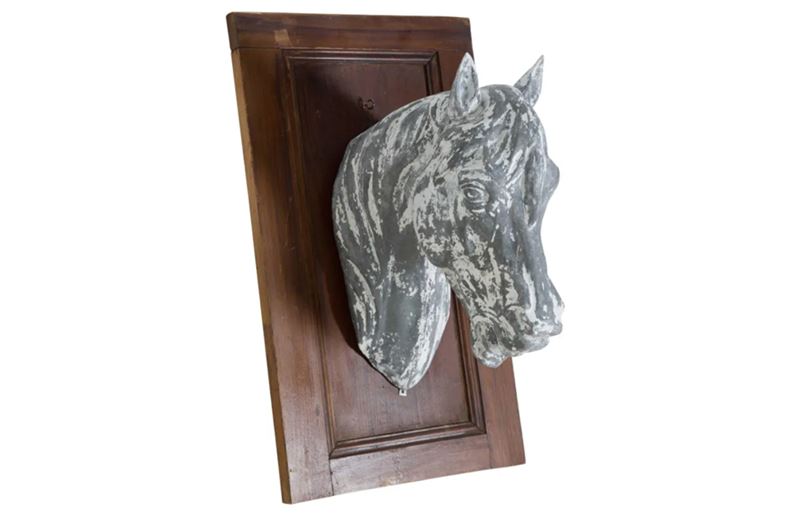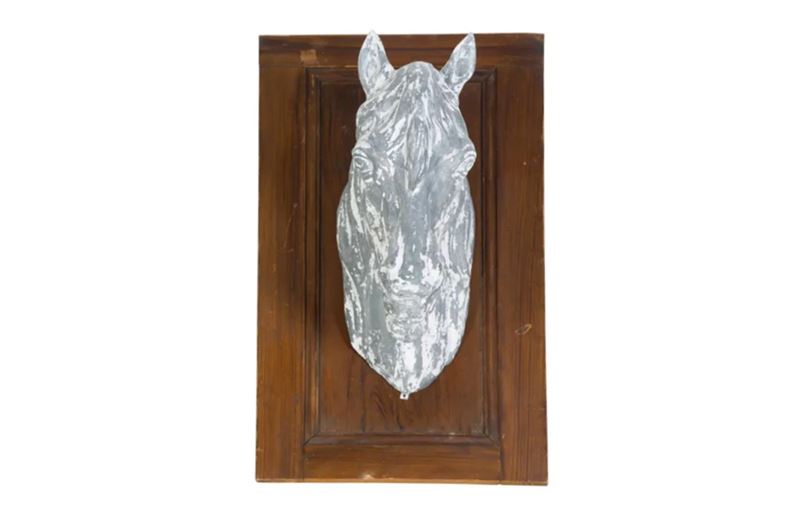 19th century zinc horse head. Horse head can be hung with or without the panel. [Dimensions include panel]