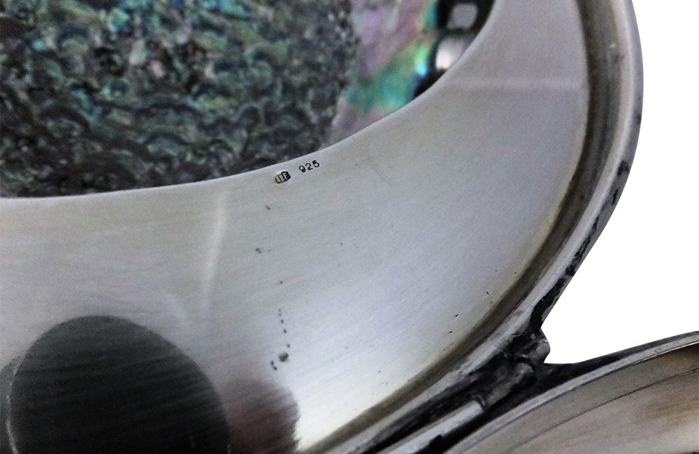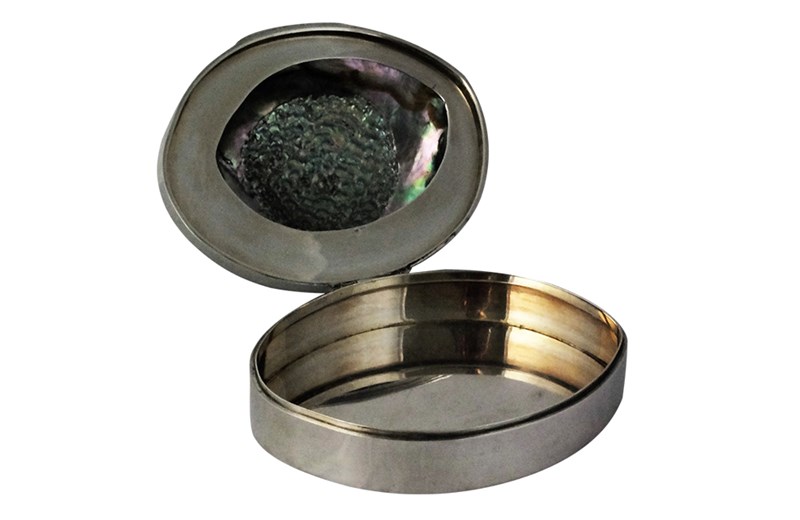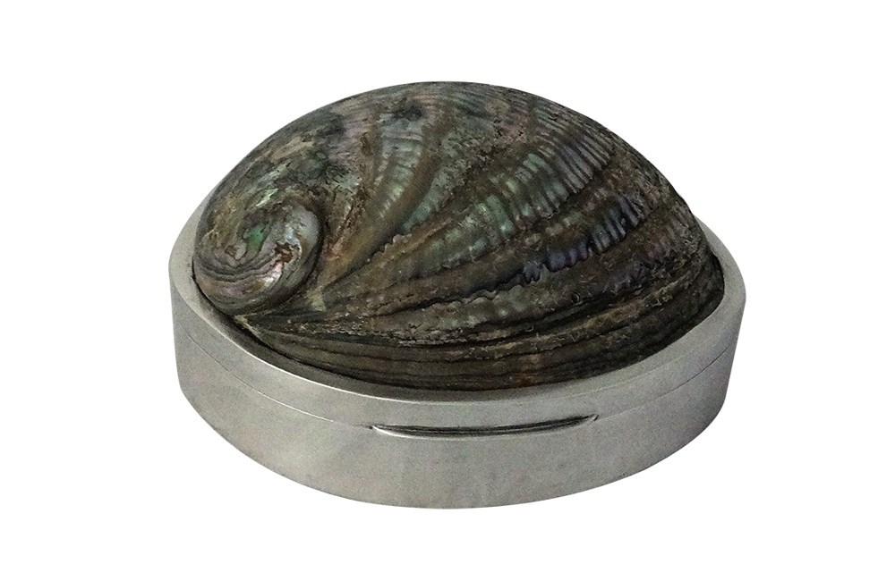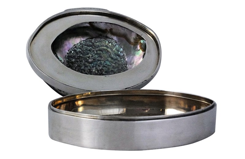 Beautiful abalone shell mounted in a silver box. Stamped 925. With beautiful iridescence and colour, this stunning piece from Italy dates to the 1960's /70's .