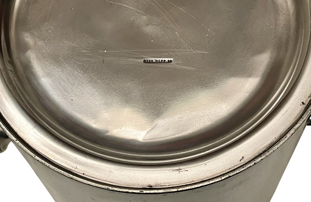 The piece is marked to the with the stamp of maker Gebruder Hepp and "90" silver plate stamp.