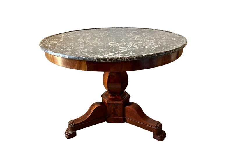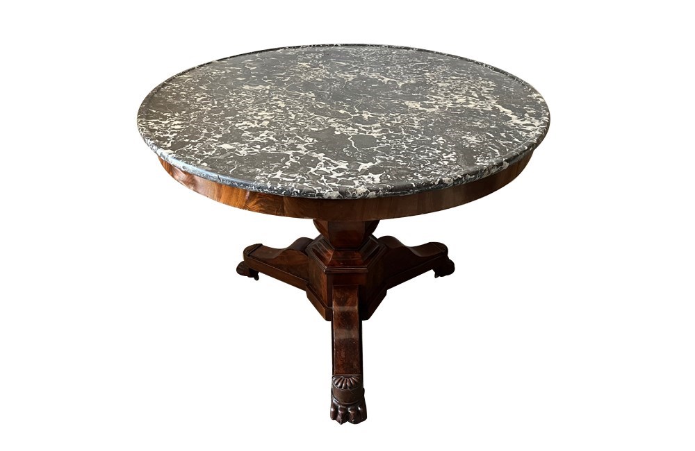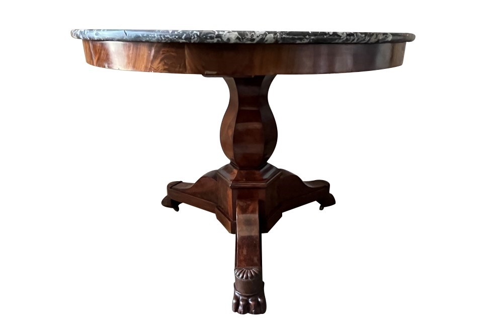 Large 19Th Century French Mahogany Gueridon With Marble Top