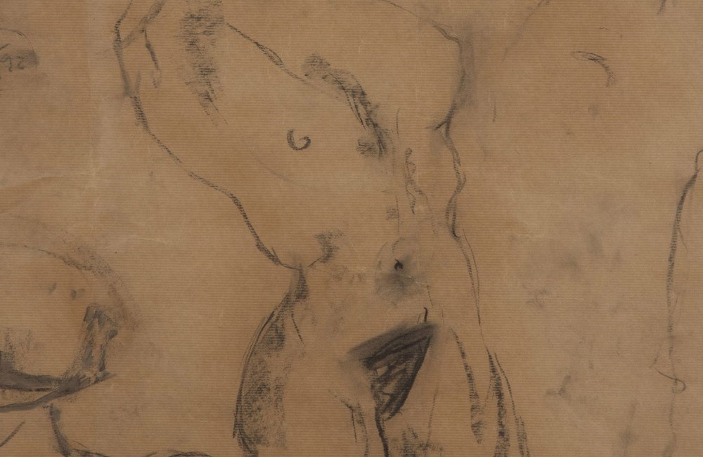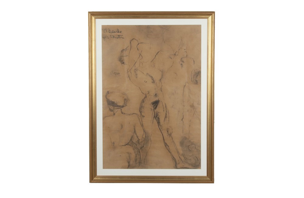Framed behind glass in gilt frame. A fabulous, rapidly executed drawing full of movement displaying a wonderful understanding of the human form.