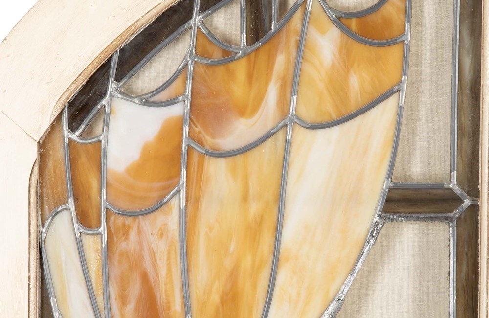 Large Art Nouveau Revival Stained Glass Arched Window